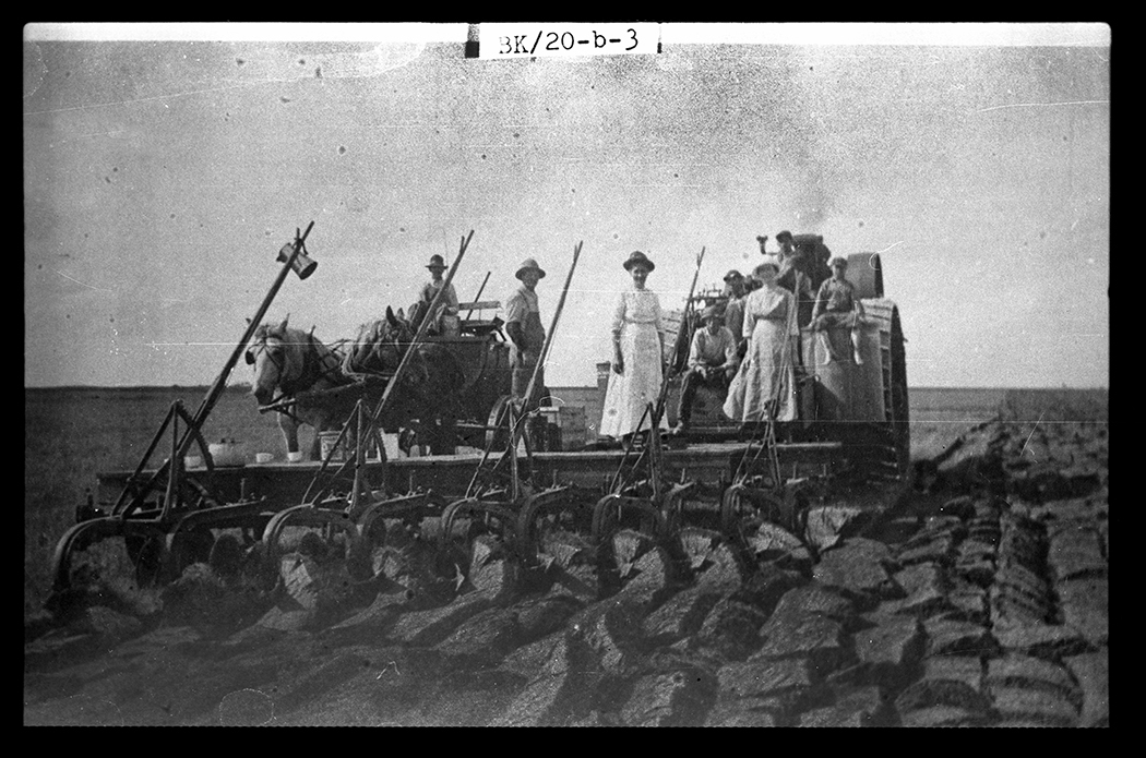 Title: Joseph, Johnny, Melvin, and Monroe Salveson steam plowing in Short Creek Township, near Columbus (N.D.)