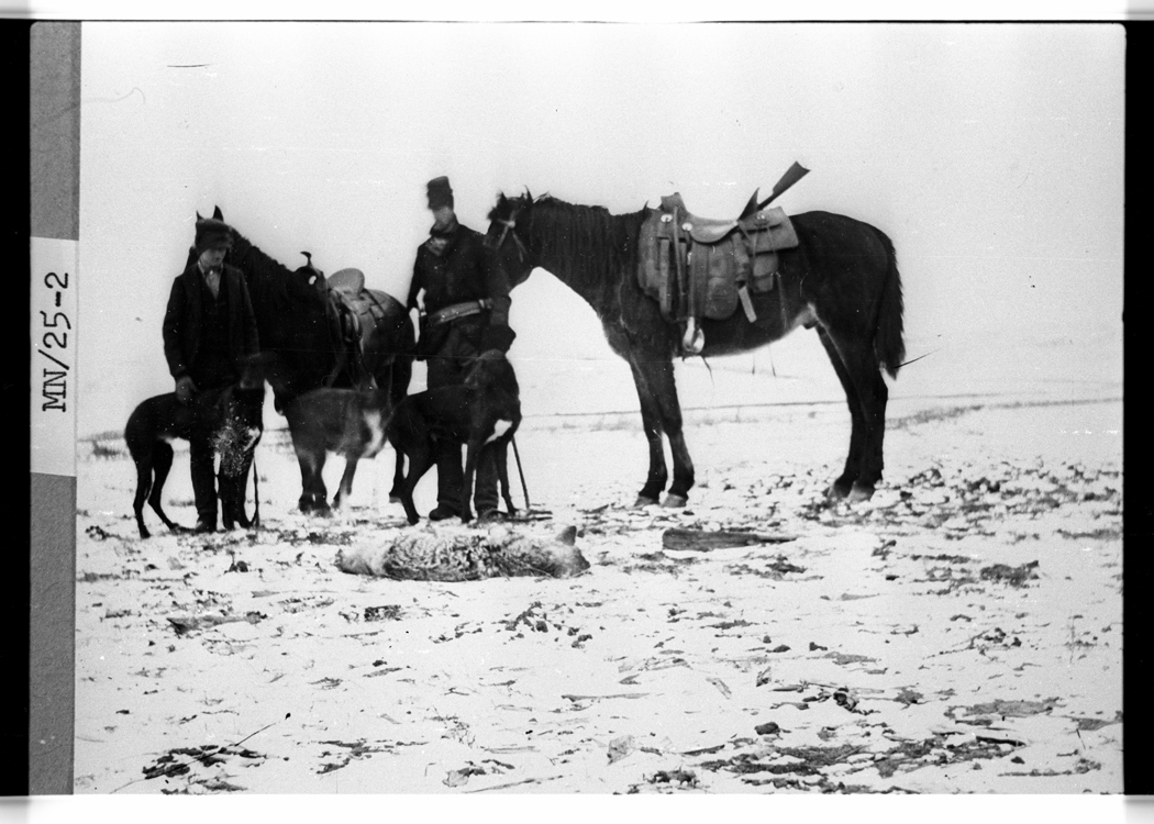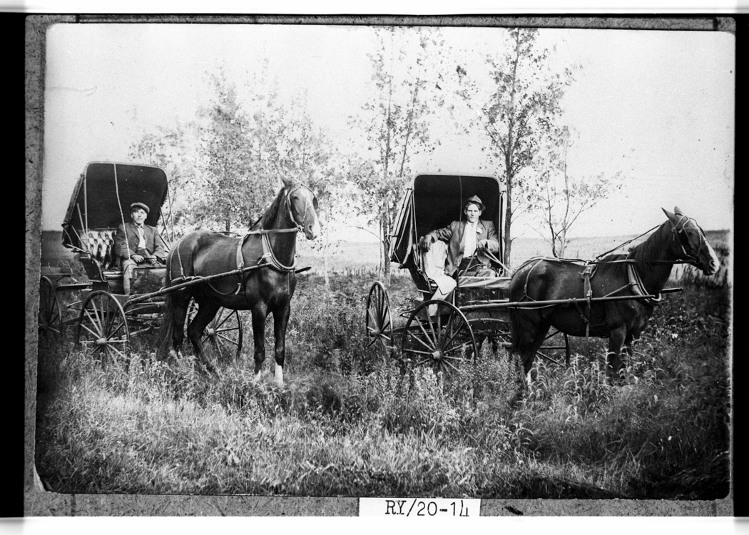 Title: Oswald Olson and John Granlund in horse drawn buggies