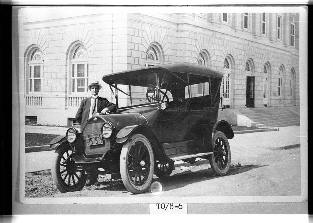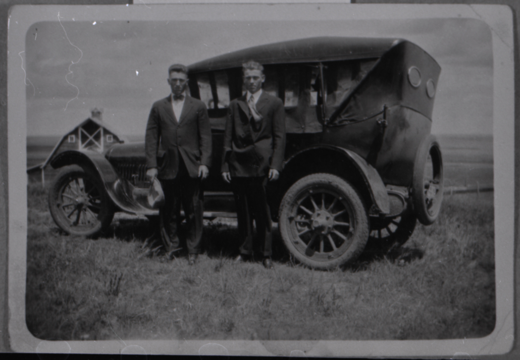 Title: Ted and Gust Darwin in front of a 1915 Buick