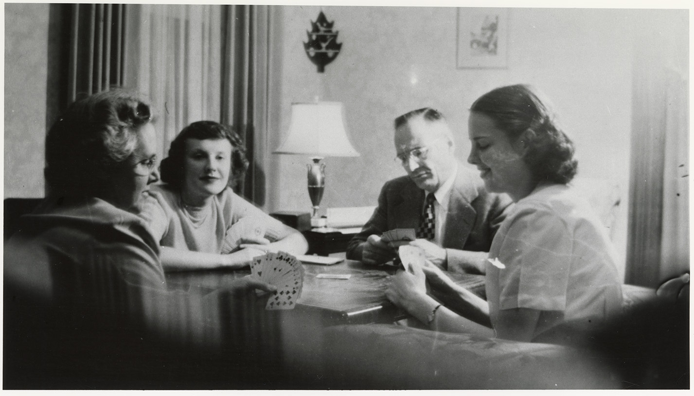 Title: Governor Fred G. Aandahl playing cards with wife and two daughters, Bismarck (N.D.)
