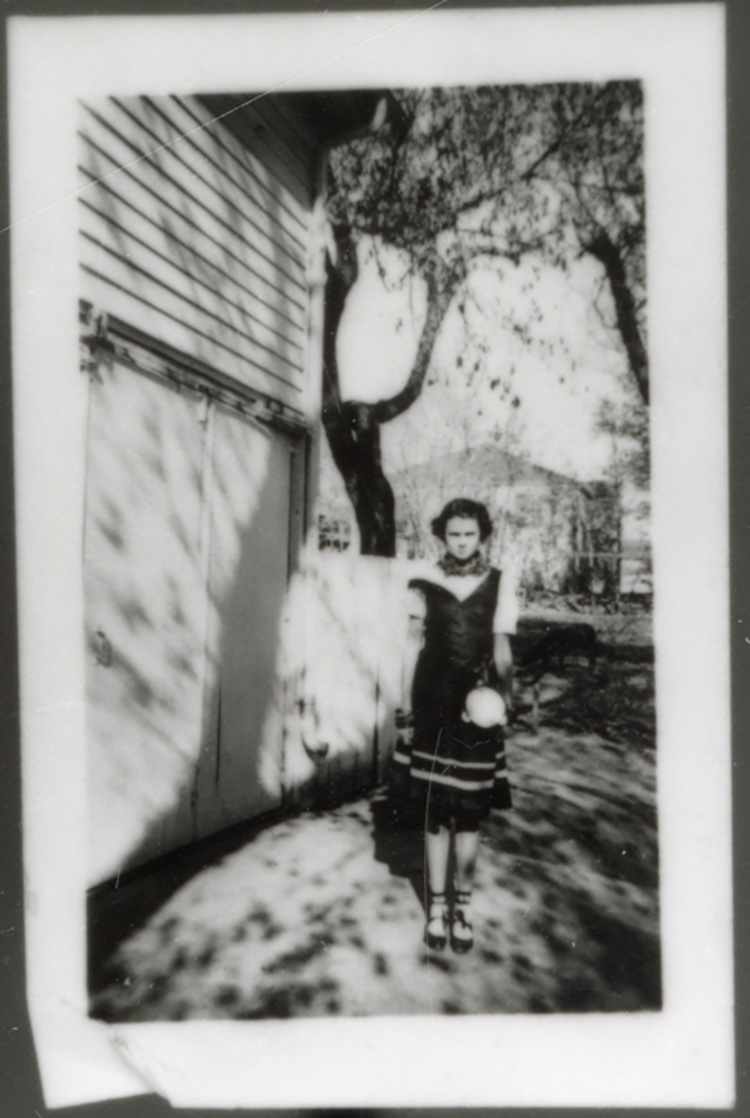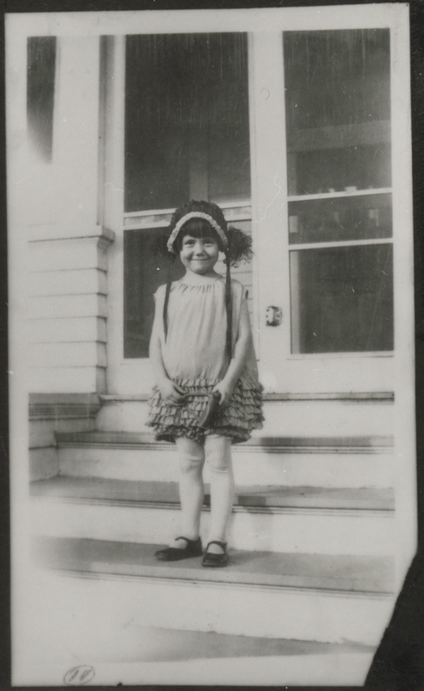 Title: Unidentified young girl by the Carriage House at the Old Governor's Mansion, Bismarck (N.D.)