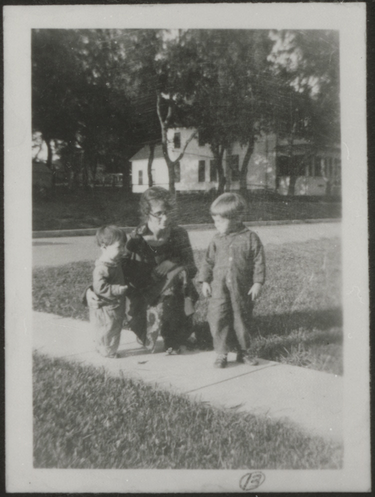 Title: Unidentified mother with two children across the street from the Old Governor's Mansion, Bismarck (N.D.)