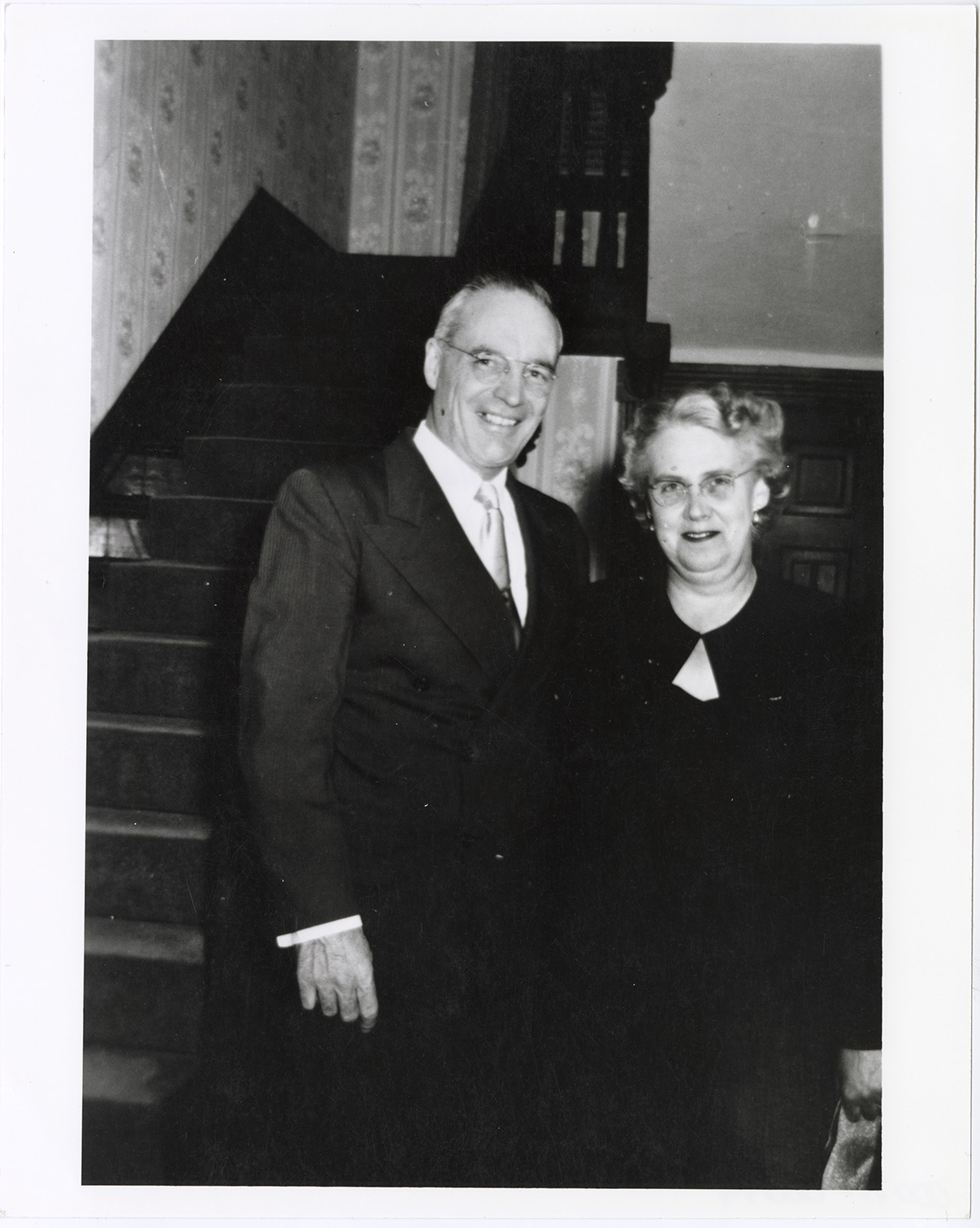 Title: Governor Fred Aandahl and First Lady Luella Aandahl at the Former Governor's Mansion