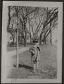 Title: Little girl with a rake near the Old Governor's Mansion in Bismarck (N.D.)