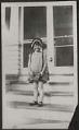 Title: A small girl in dress-up clothes on the steps of the Old Governor's Mansion, Bismarck (N.D.)