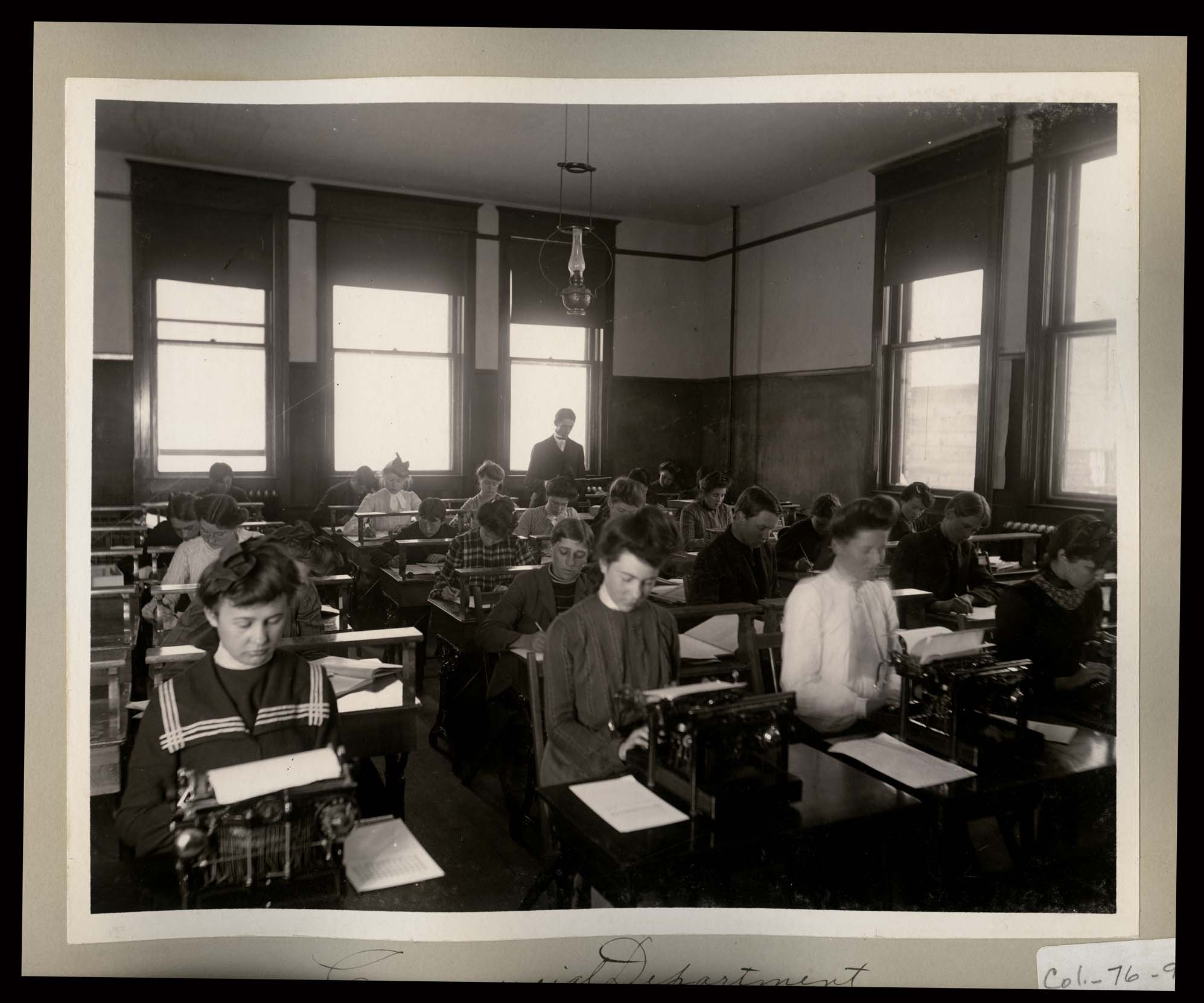 Title: Students at work in the Commercial Department classroom in the High School at Valley City (N.D.)