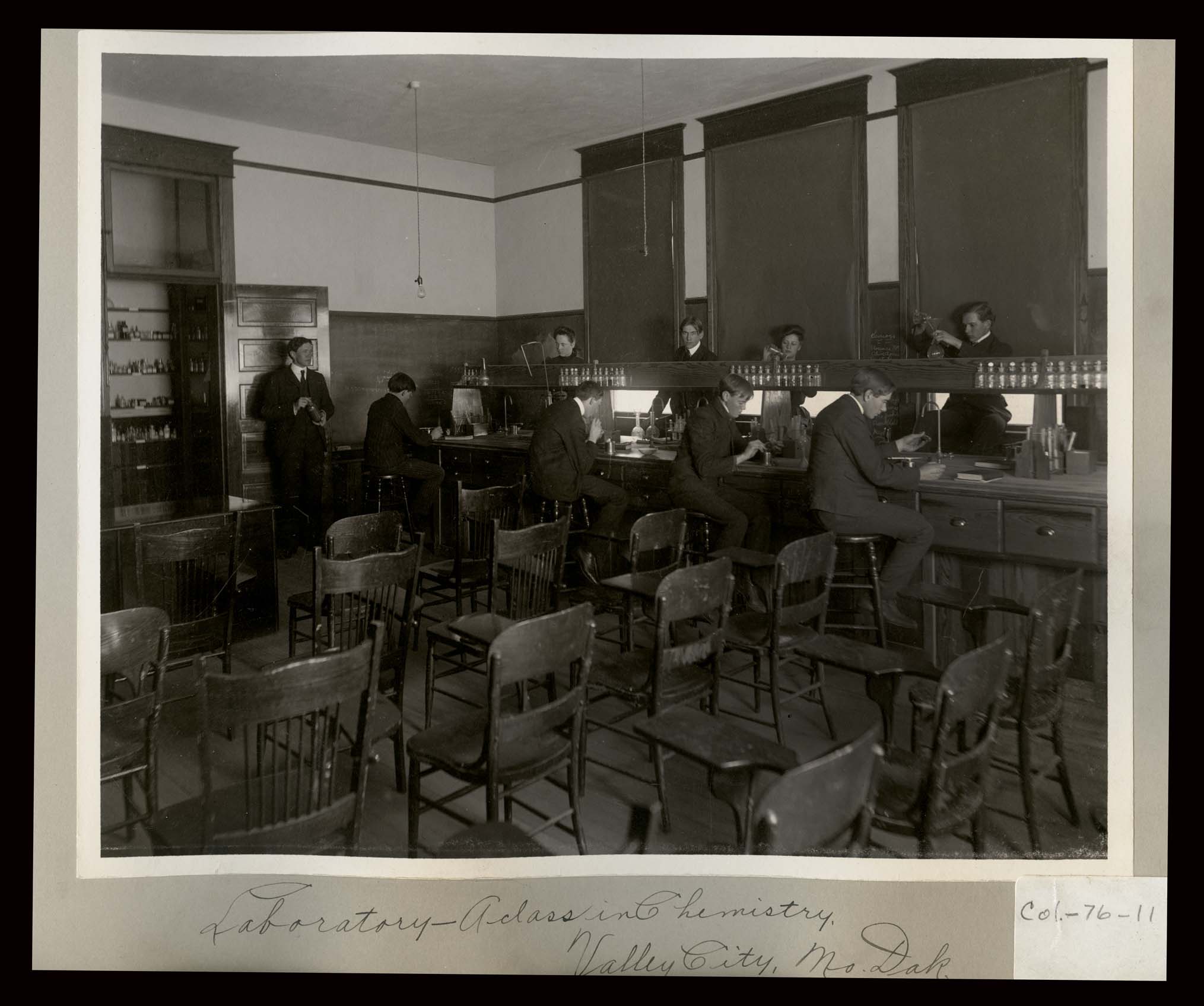 Title: Students listen to a lecture in the Science Lecture Room of the High School in Valley City (N.D.)