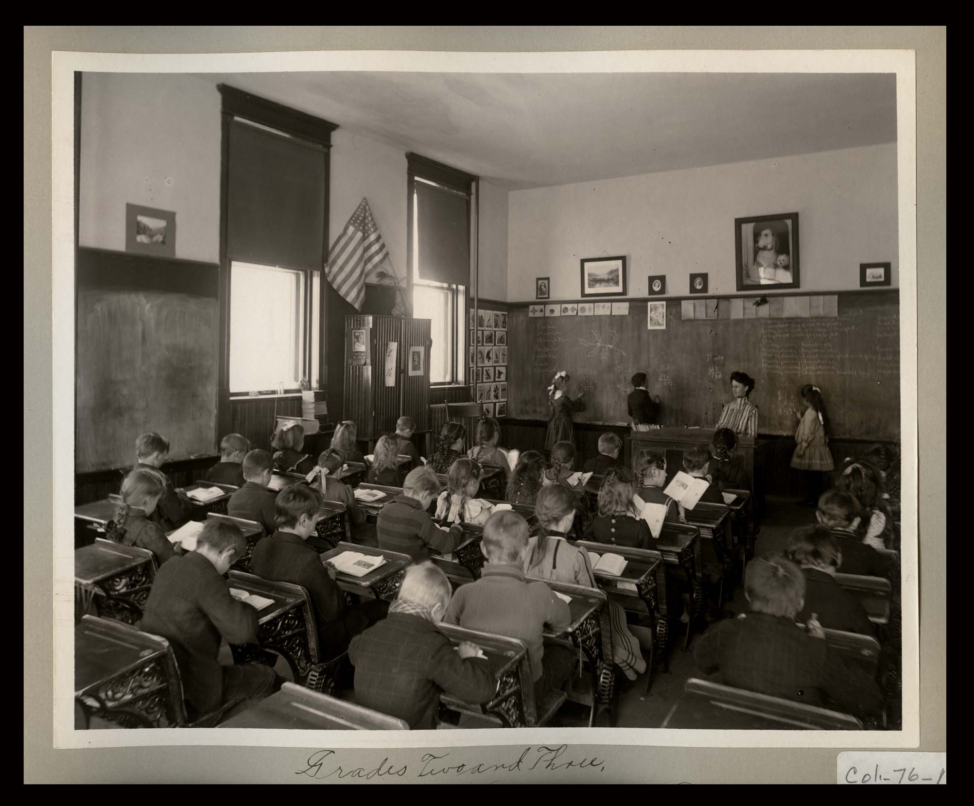 Title: The students in the combined Grades Two and Three classes study in the Elementary School at Valley City (N.D.)