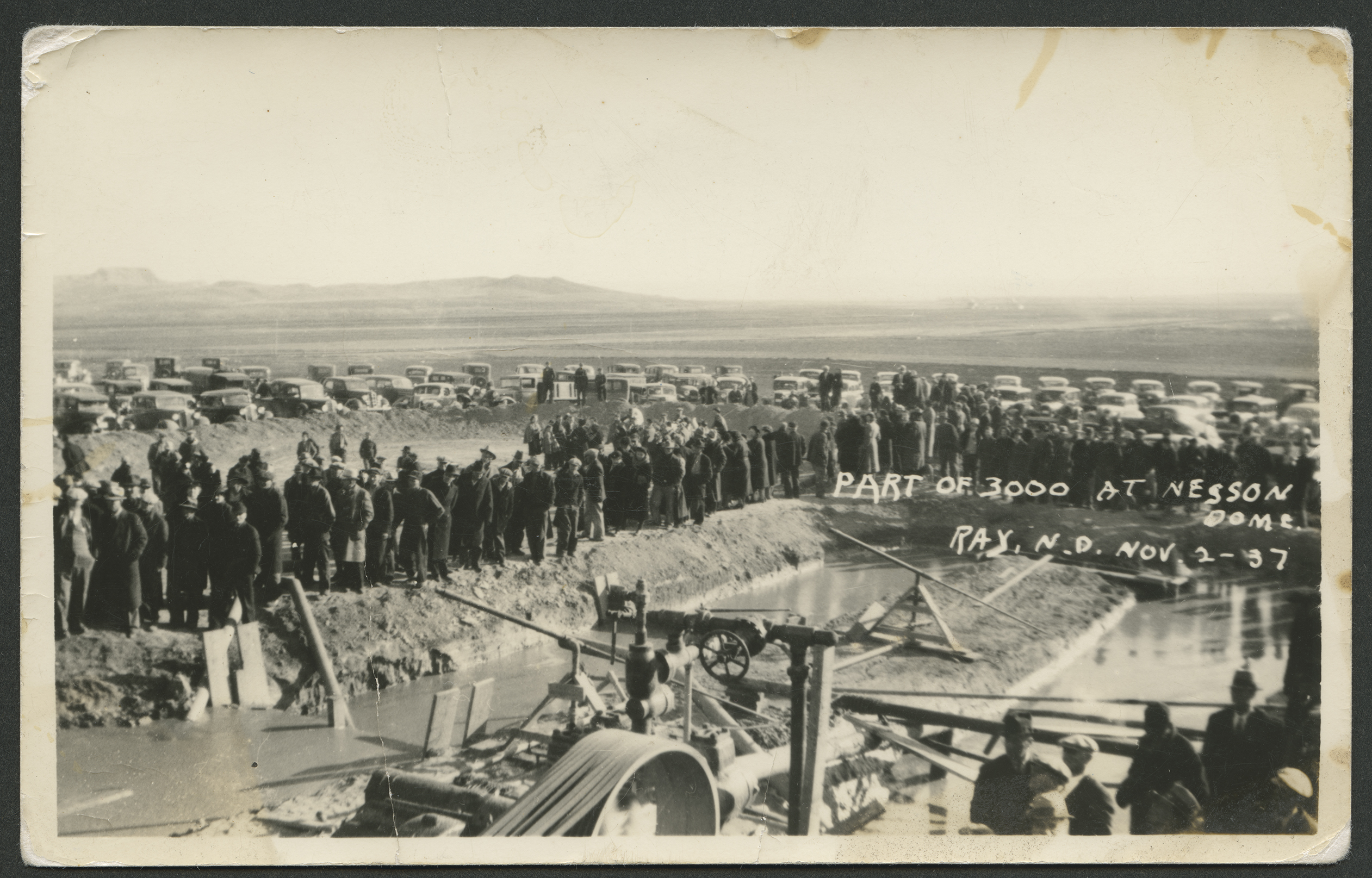 Title: Group waiting for President Franklin D. Roosevelt near remains of Minnie H, Devils Lake (N.D.)