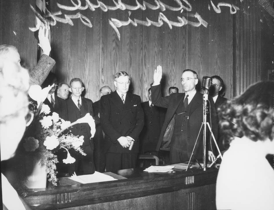 Title: John Moses at Fred Aandahl's swearing in ceremony, Bismarck (N.D.)