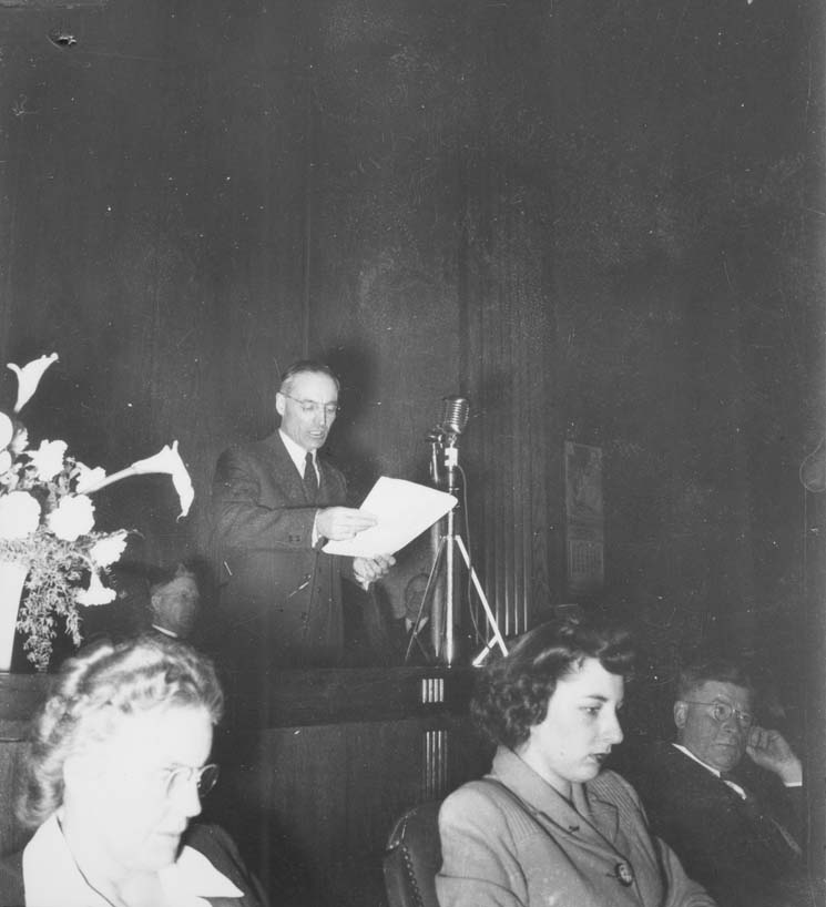 Fred G. Aandahl speaking to the North Dakota Legislature, Bismarck (N.D.)