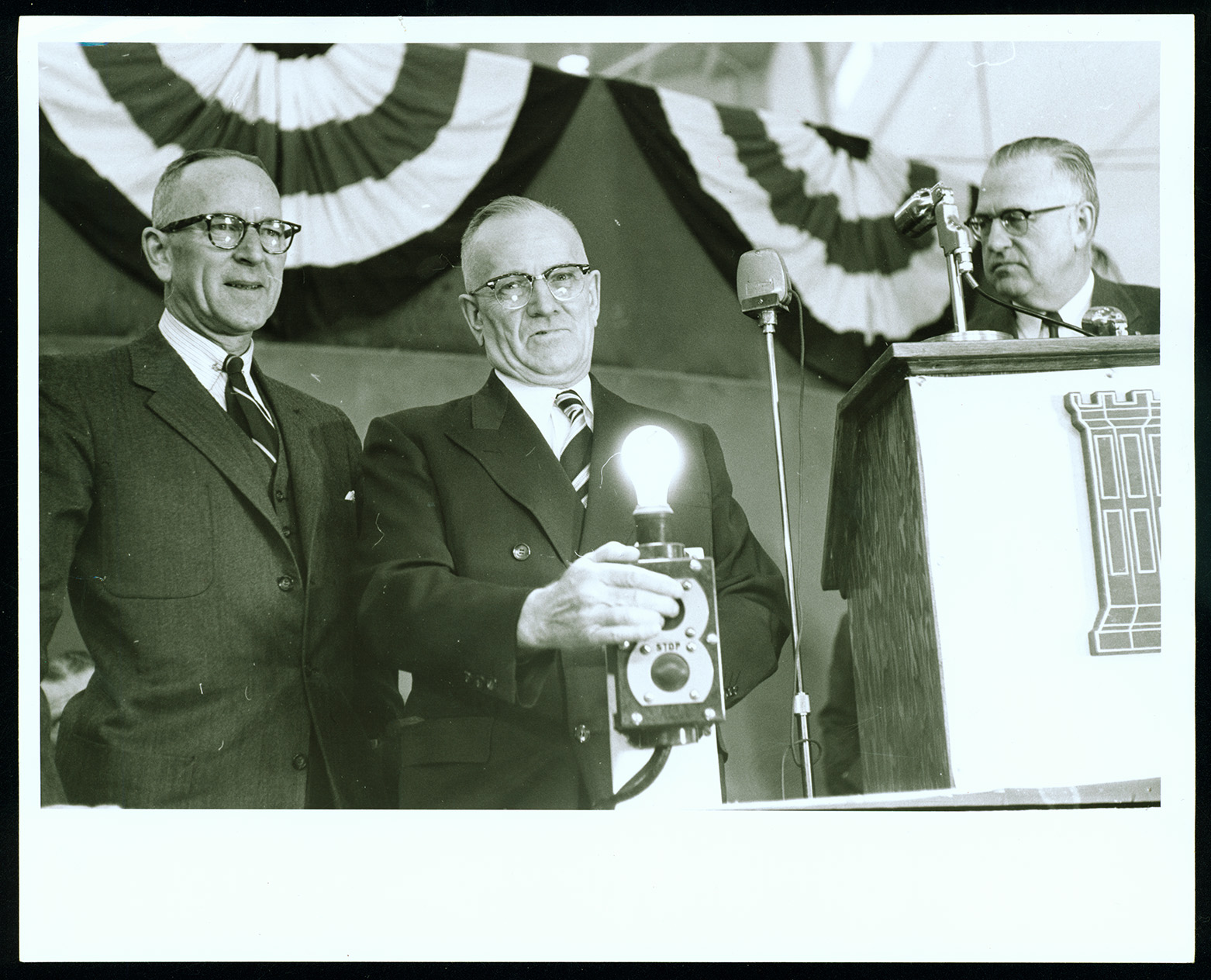 Governor Norman C. Brunsdale turning on the power at Garrison Dam (N.D.)