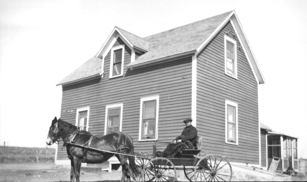 Jens Jakobsen with horse and buggy at Jacobsen farm