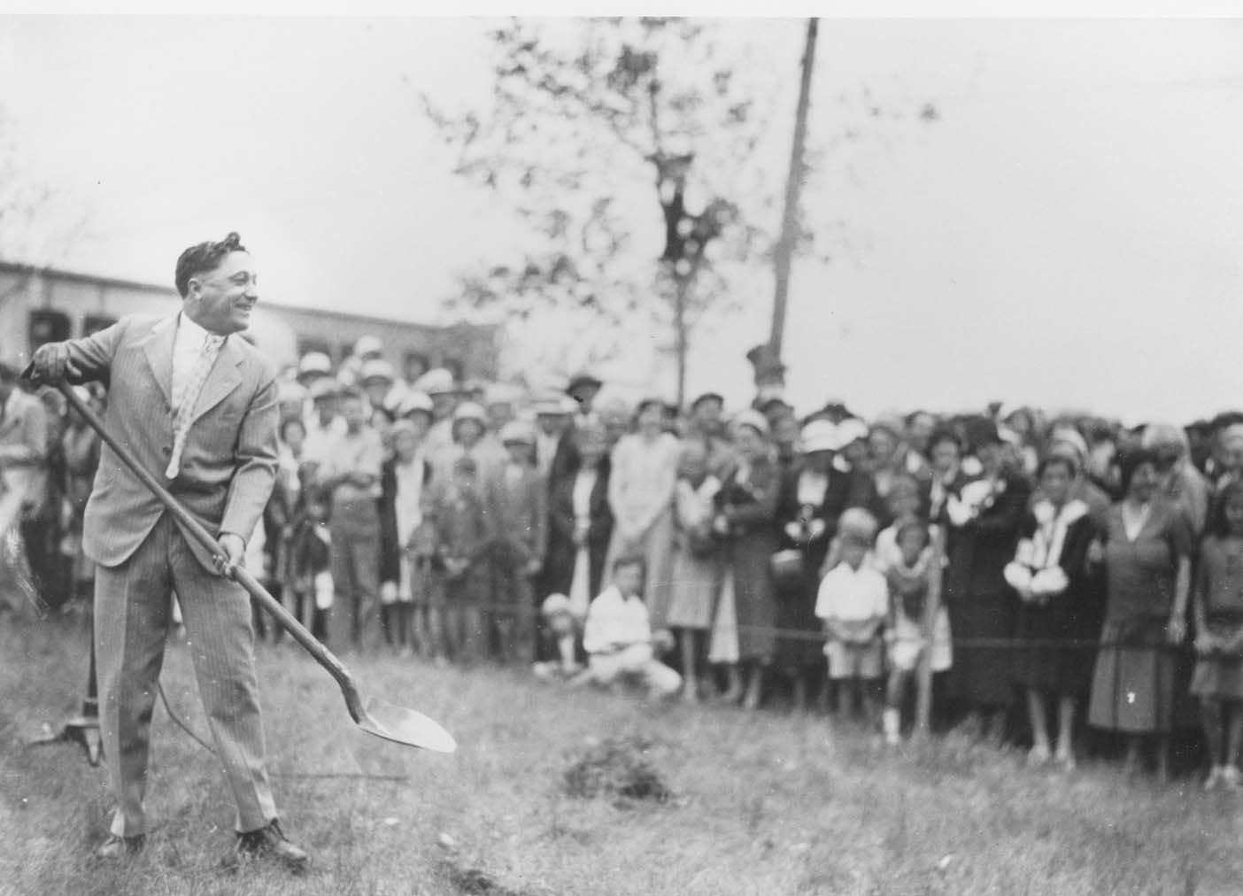 Title: Governor George F. Shafer at groundbreaking of the new State Capitol