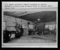 Title: Frank R Marrs standing at switch in garage shop, Harry Flint or Chester Mavie next to car, Wolford (N.D.)