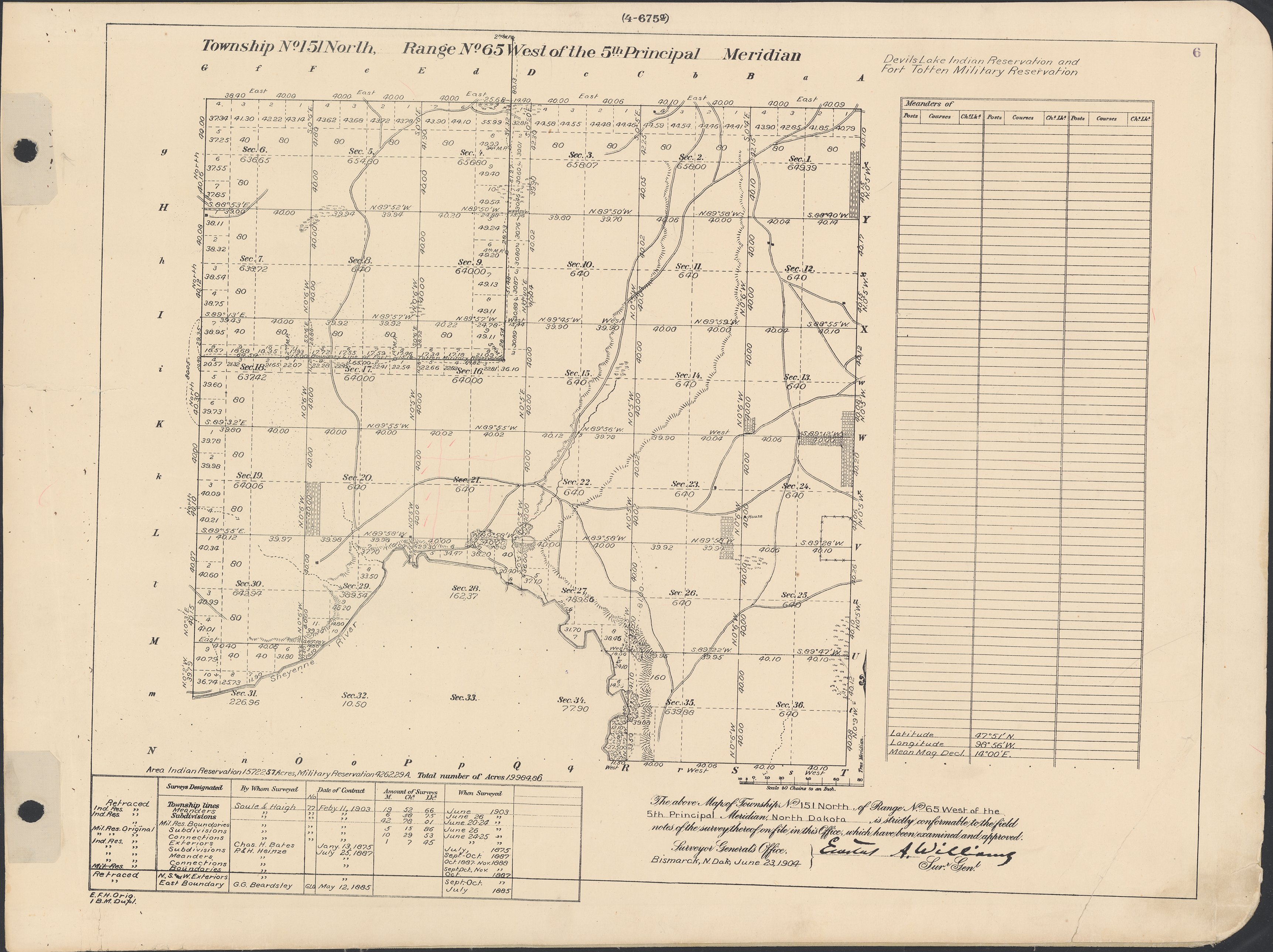 Title: Survey drawing, Township 151 N, Range 66 W of the 5th principal meridian