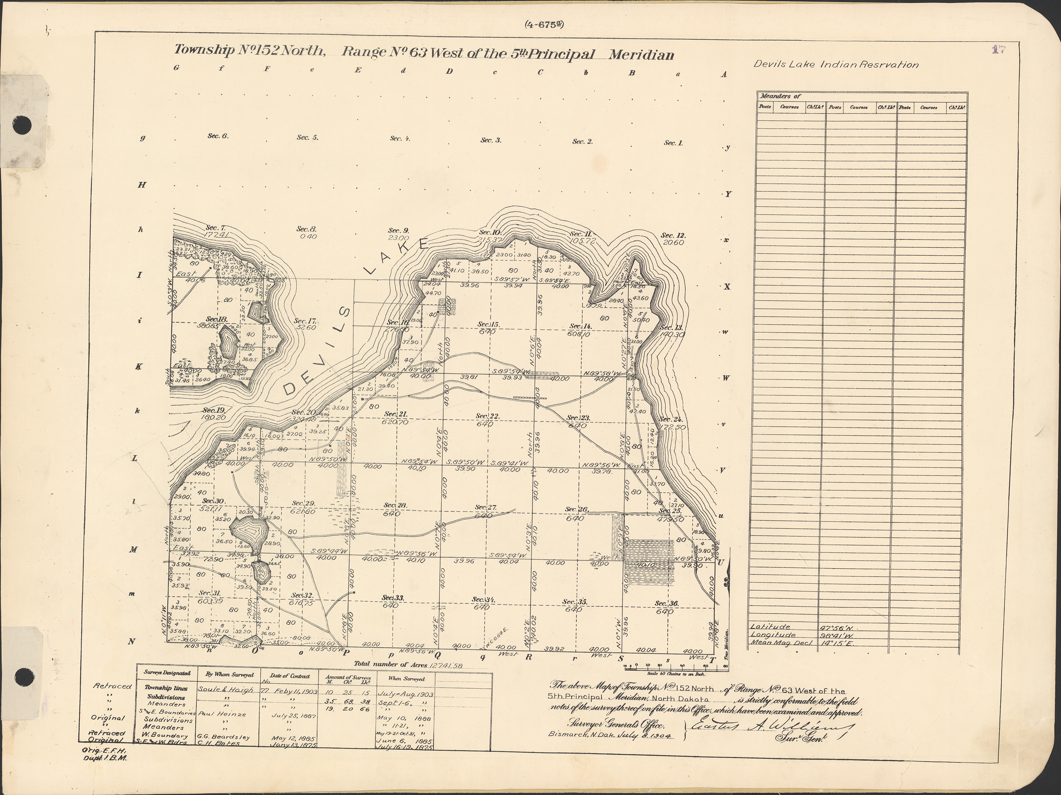 Title: Survey drawing, Township 152 N, Range 63 W of the 5th principal meridian