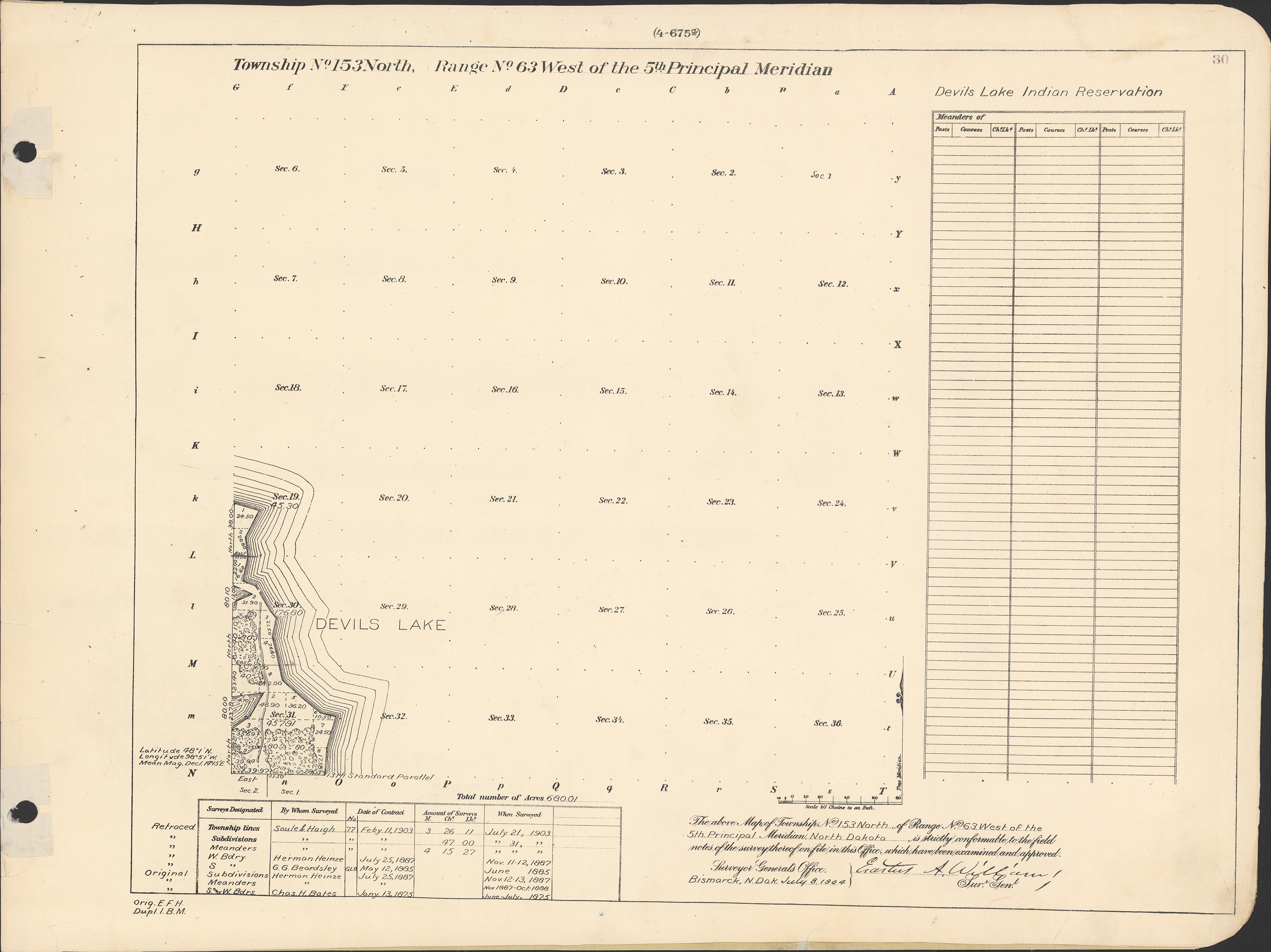Title: Survey drawing, Township 153 N, Range 63 W of the 5th principal meridian