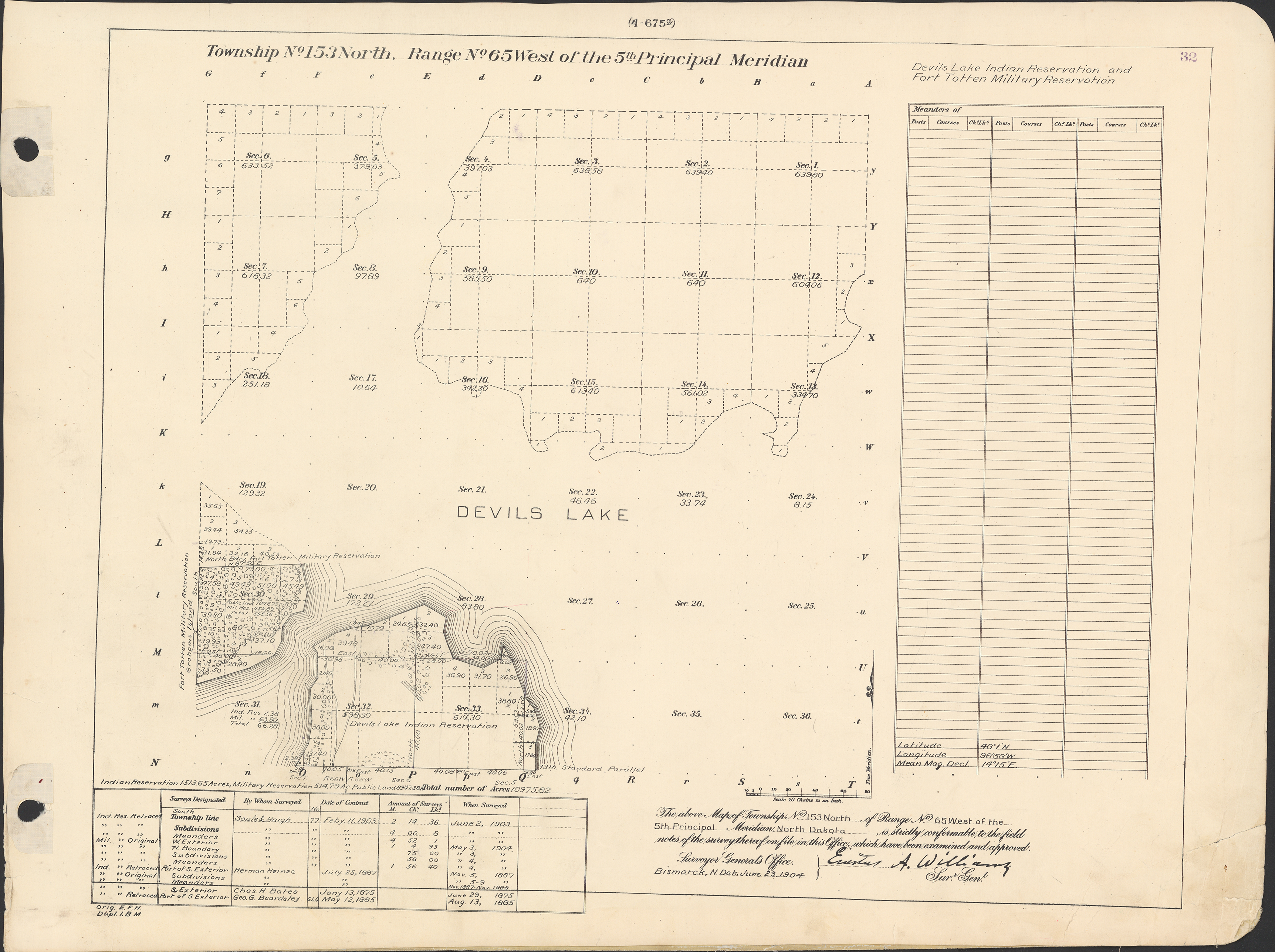 Title: Survey drawing, Township 153 N, Range 65 W of the 5th principal meridian