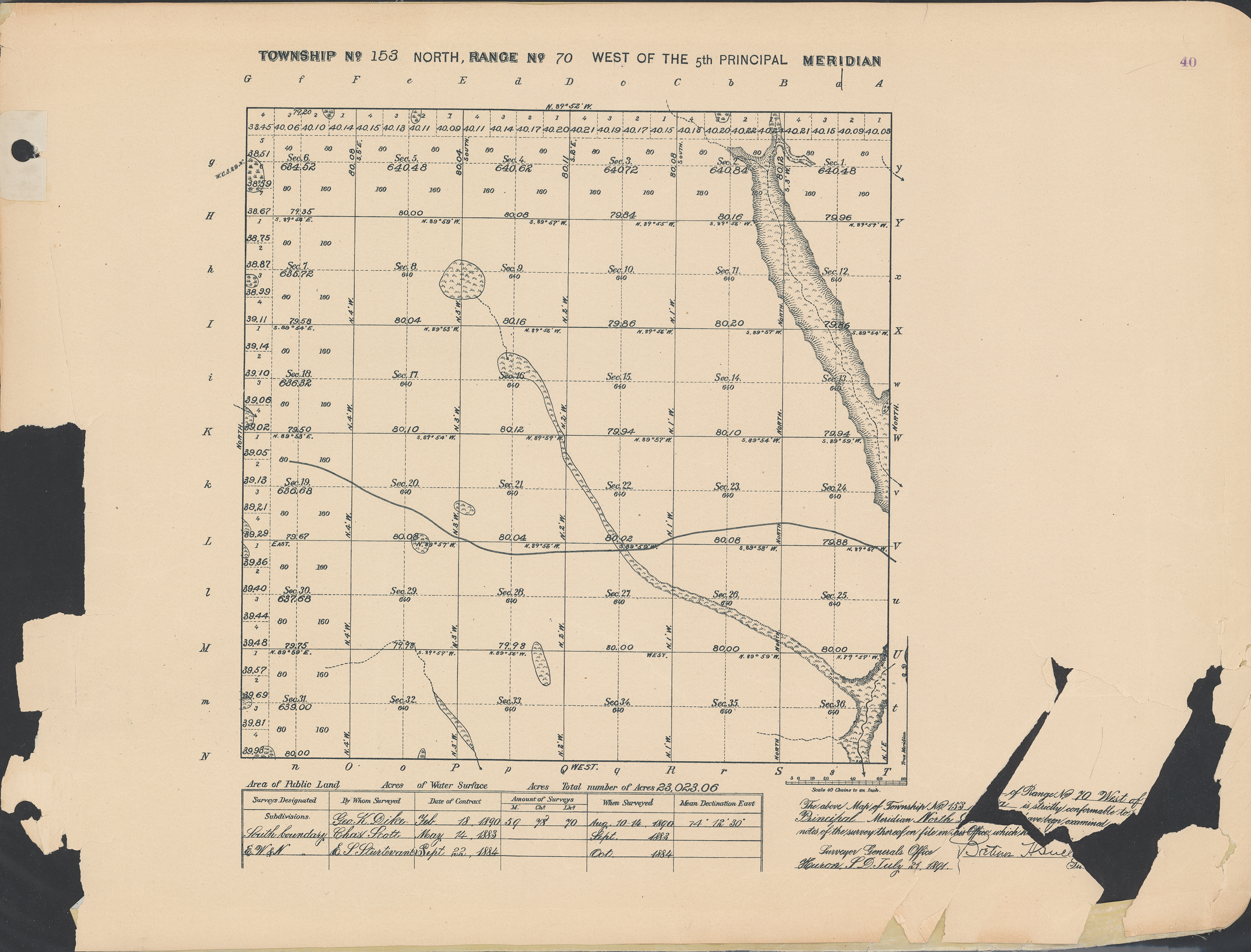 Title: Survey drawing, Township 153 N, Range 70 W of the 5th principal meridian