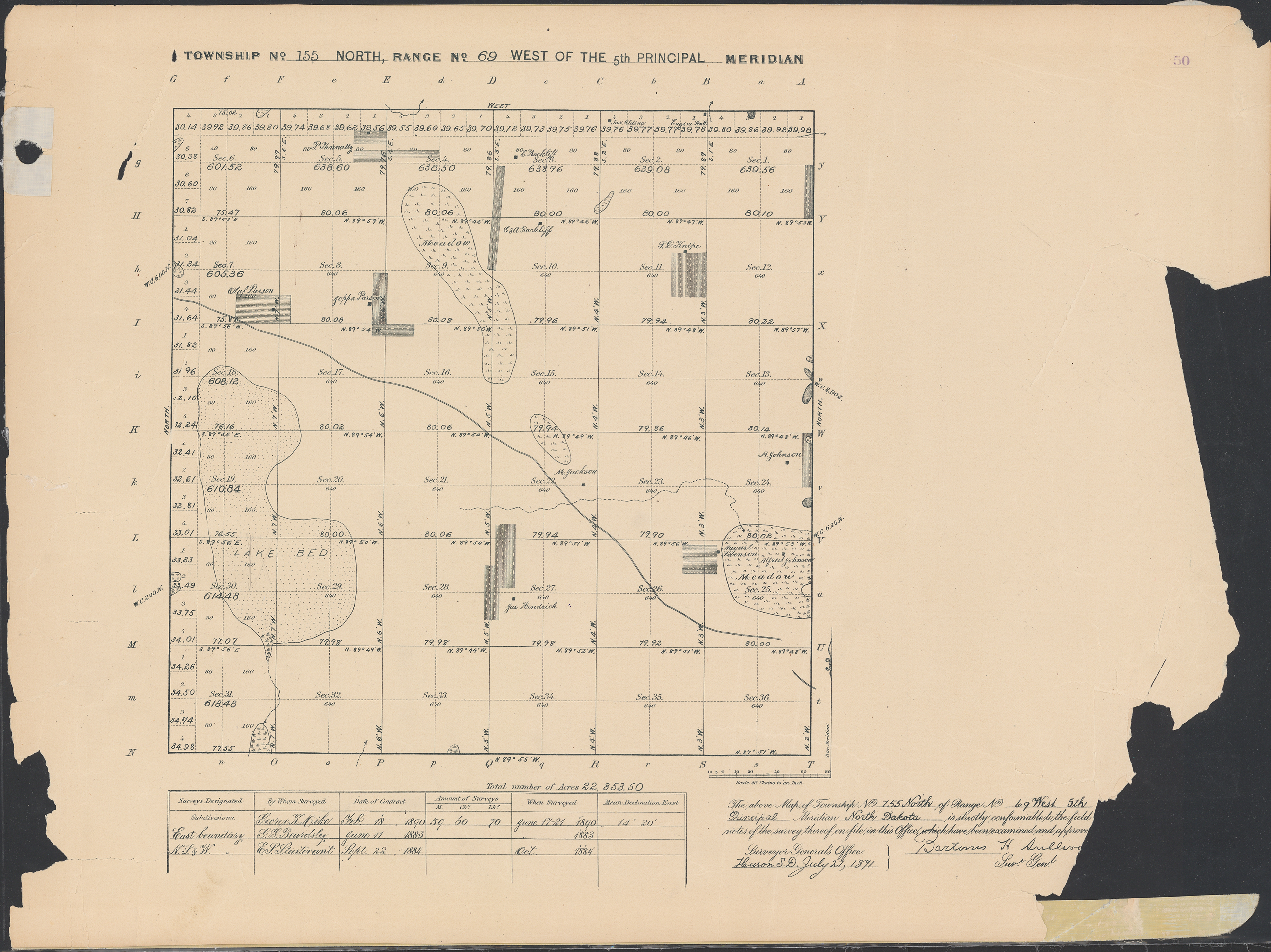 Title: Survey drawing, Township 155 N, Range 69 W of the 5th principal meridian