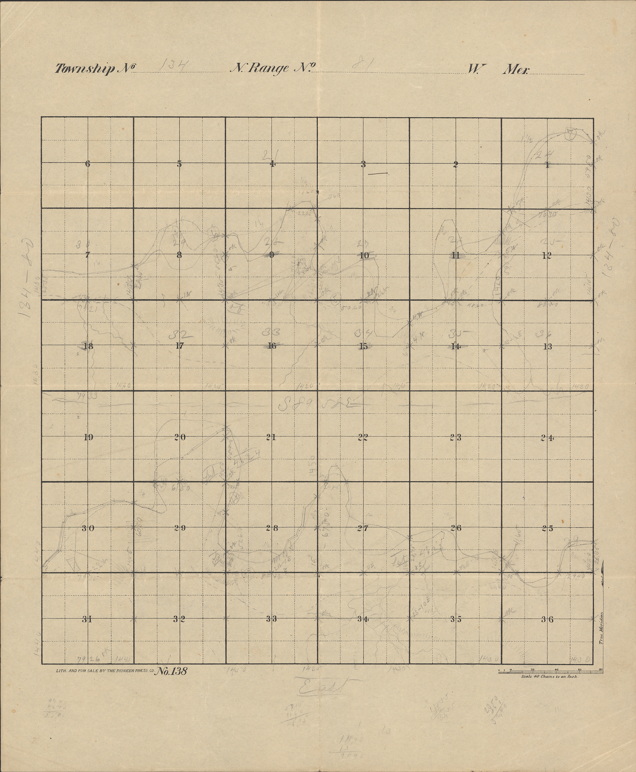 Title: Survey drawing of Township 134 Ranges 80-81