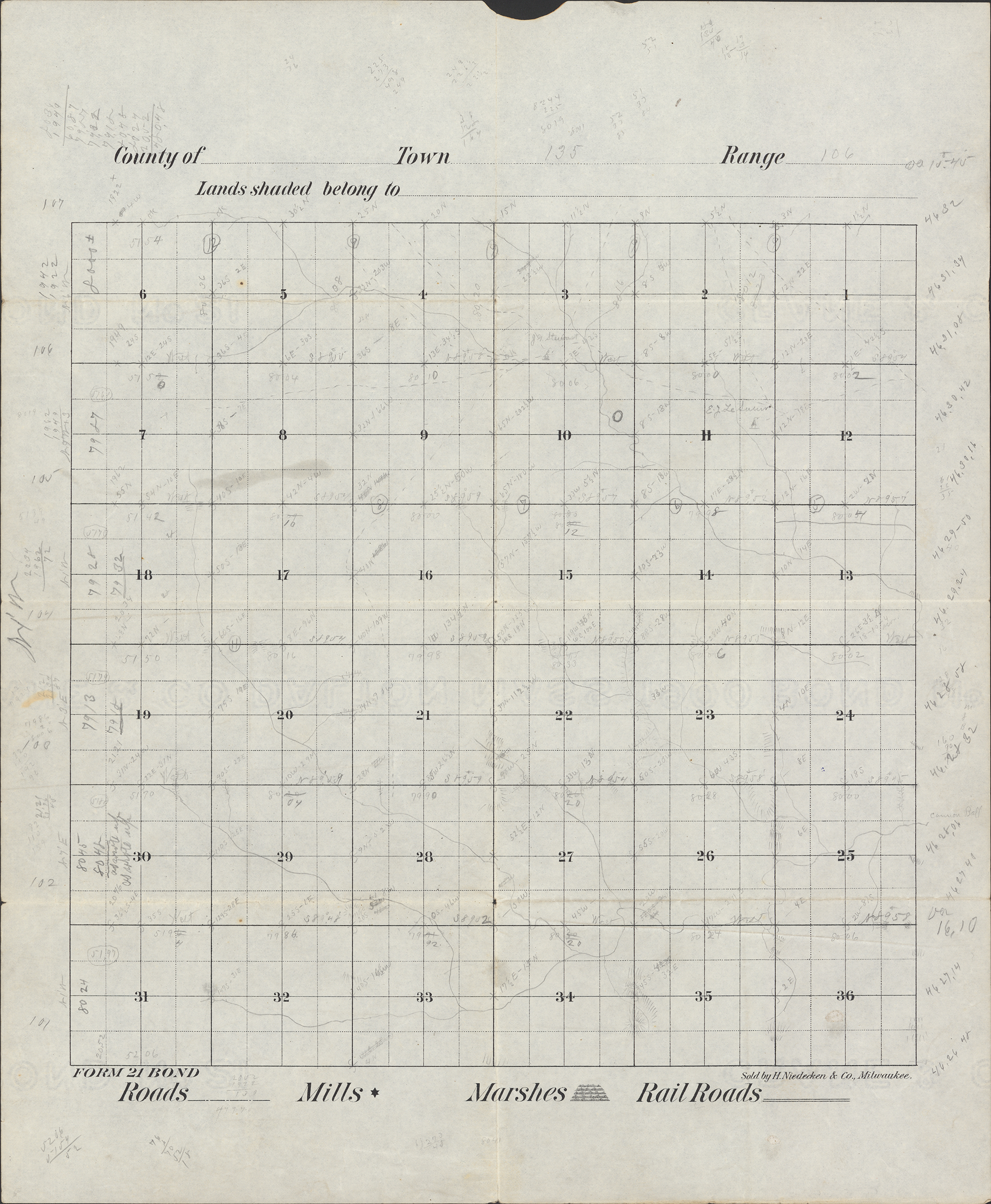 Title: Survey drawing of Township 135 Range 106