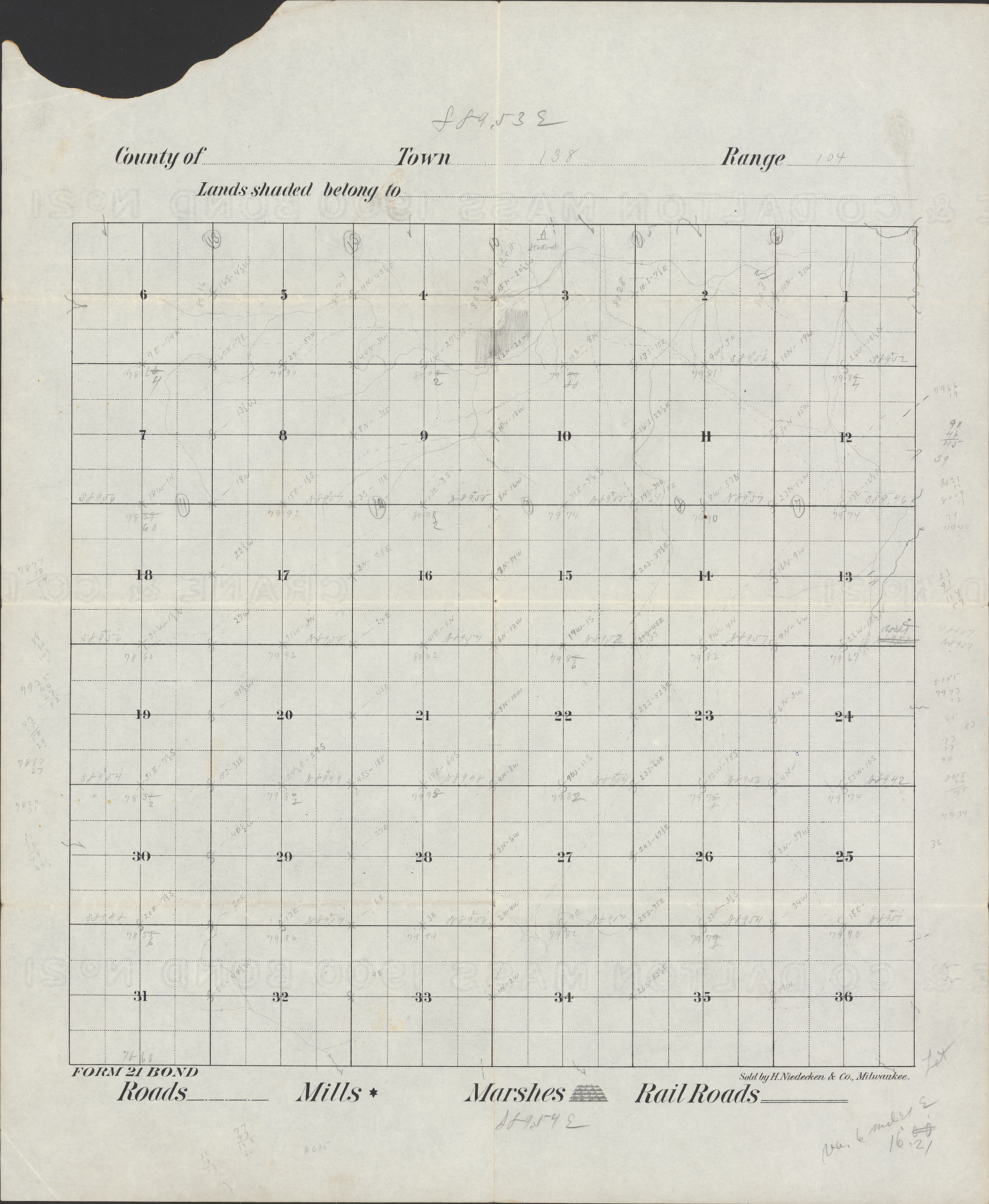 Title: Survey drawing of Township 138 Range 104