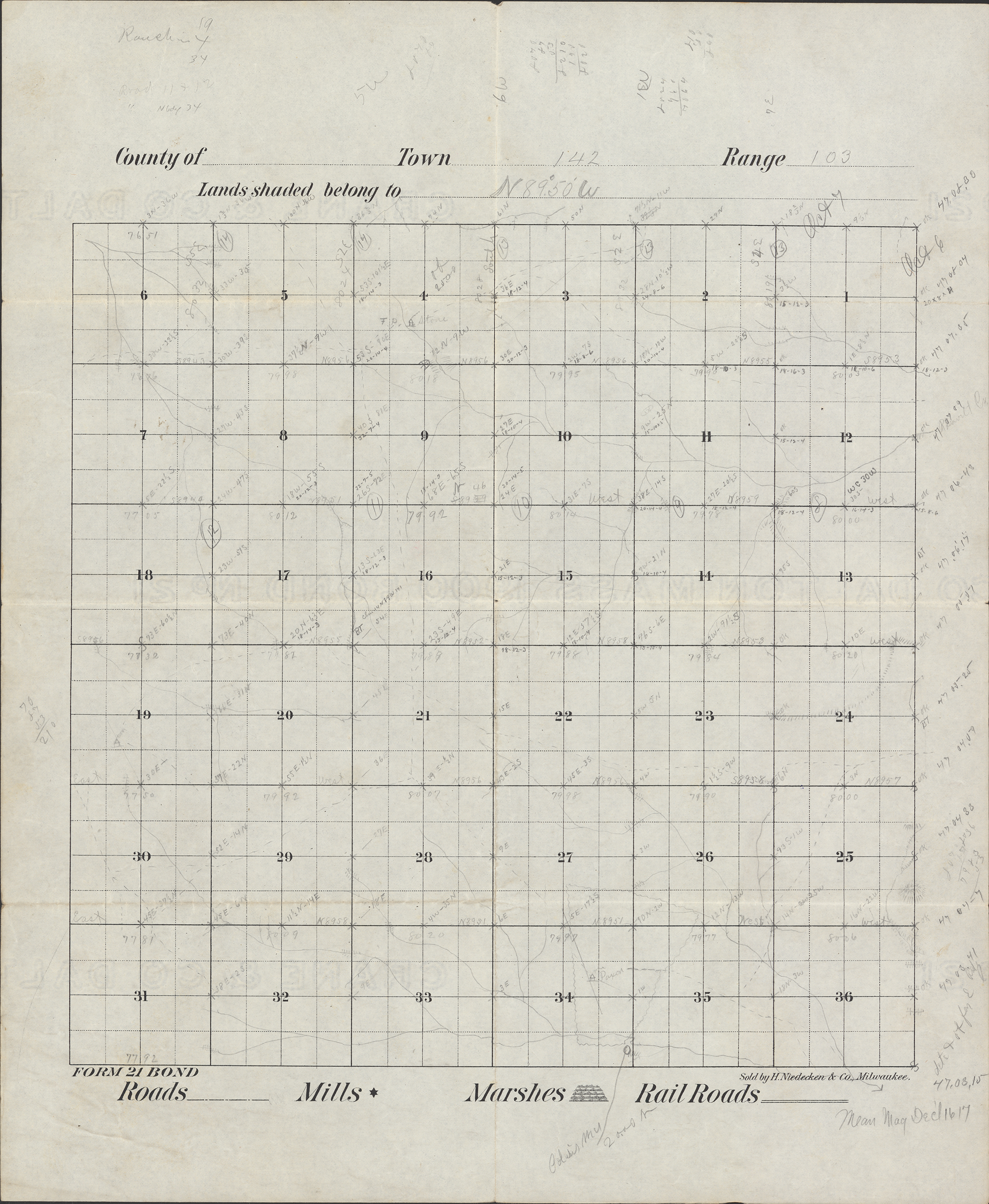 Title: Survey drawing of Township 142 Range 103