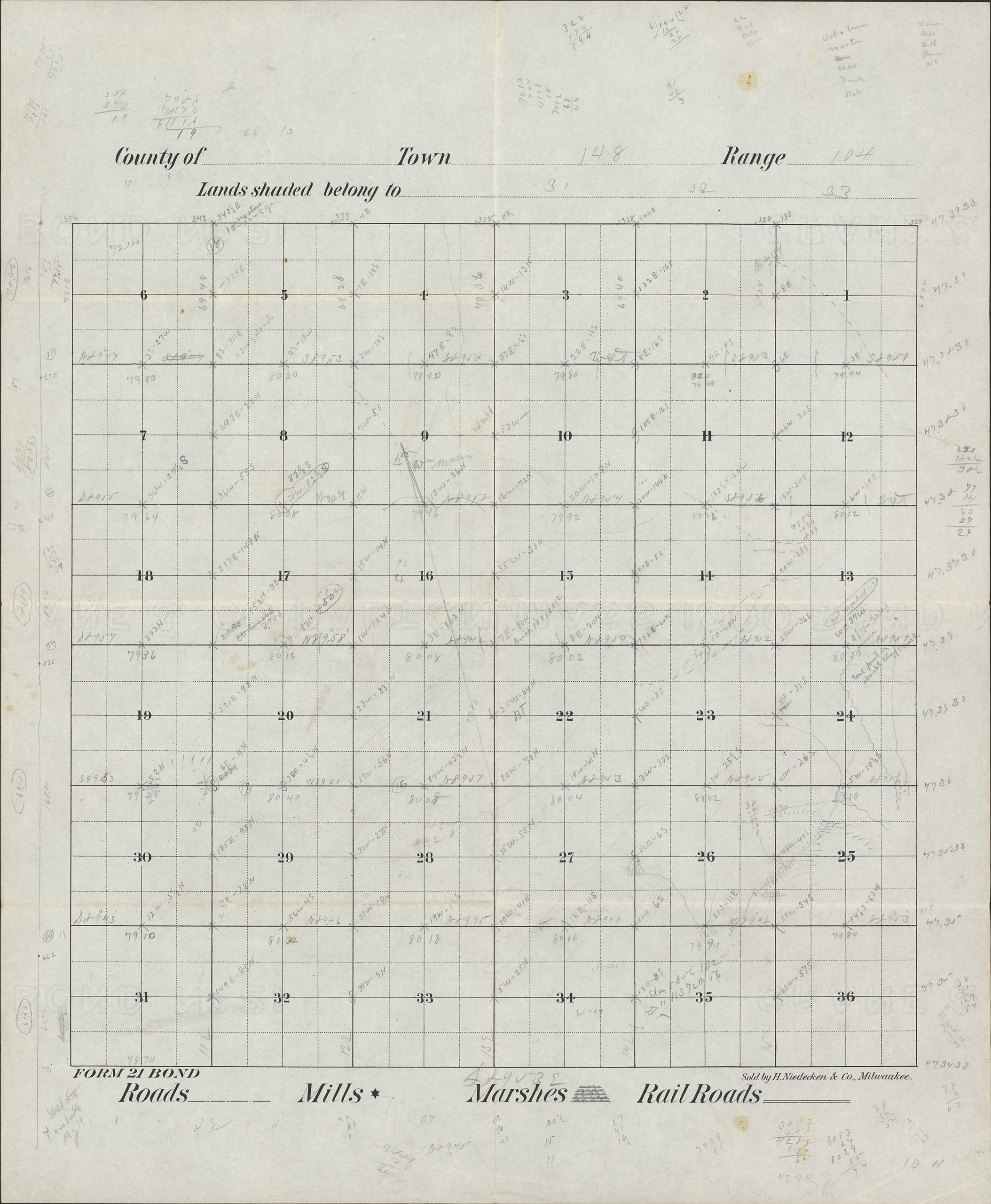 Title: Survey drawing of Township 148 Range 104