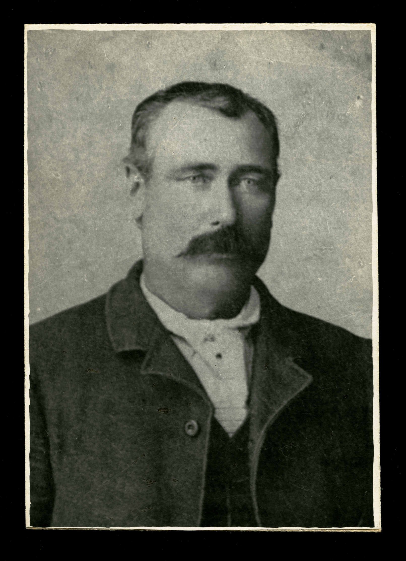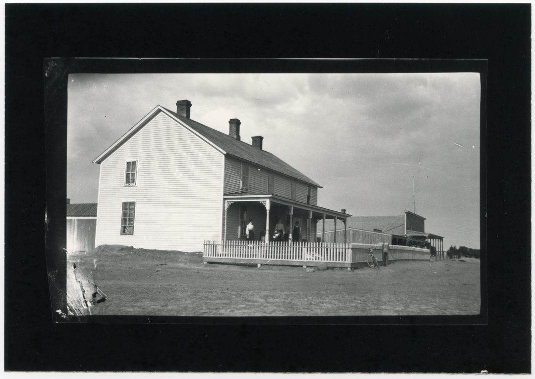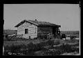 Title: Johnnie O'Flynn, Dakota pioneer, in front of his cabin, Winona (N.D.)