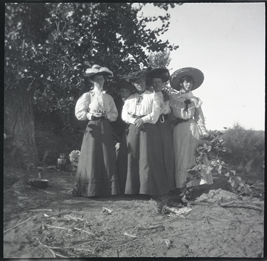 Title: Victoria Marsh Wells, Mrs. Agnes Reedy, Catherine Reedy, and Eva Marsh on outing to Missouri River