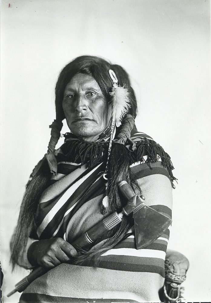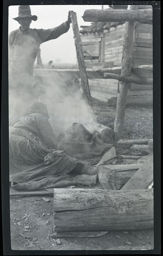 Title: Mr. and Mrs. Feather Earring smoking buckskins, Kenel (S.D.)