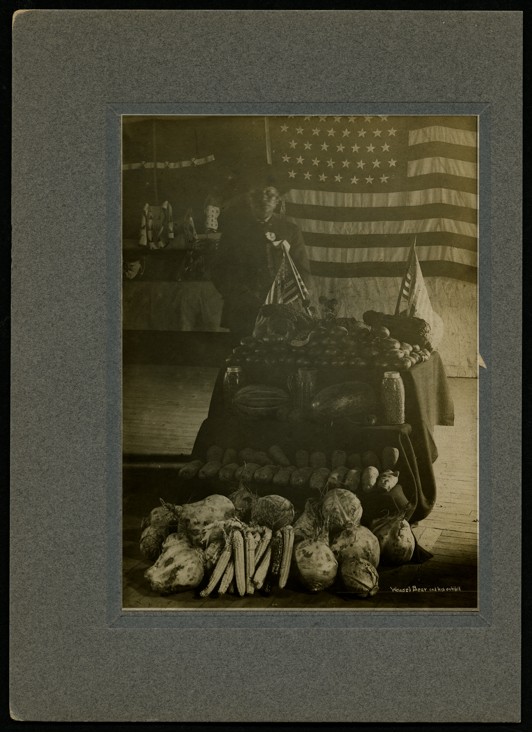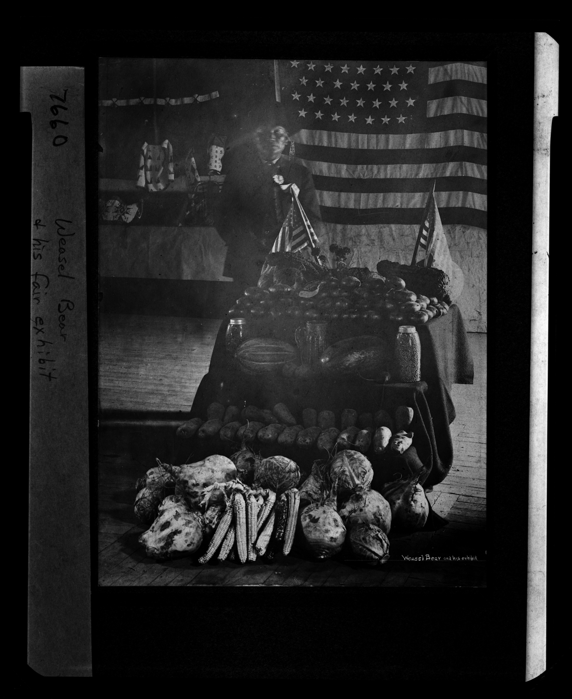 Title: Weasel Bear and his exhibit at the Standing Rock Agency Fair, Fort Yates N.D.)