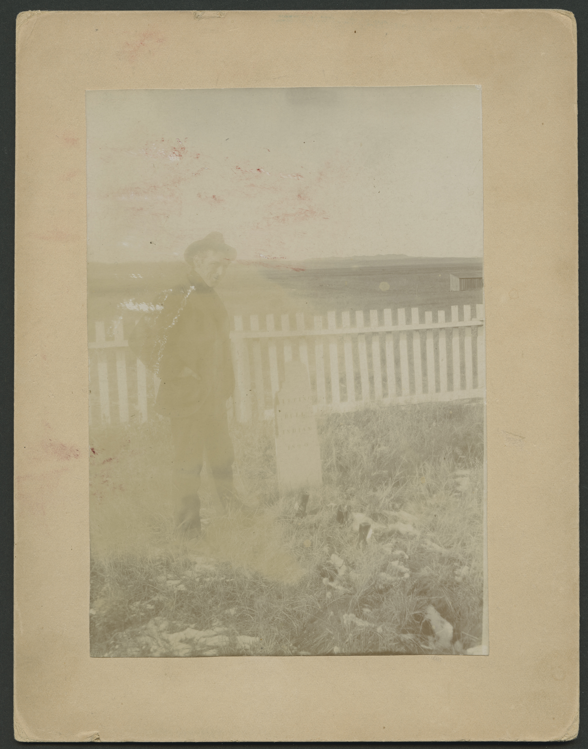 Title: Unknown man at Sitting Bull's grave, Fort Yates (N.D.)