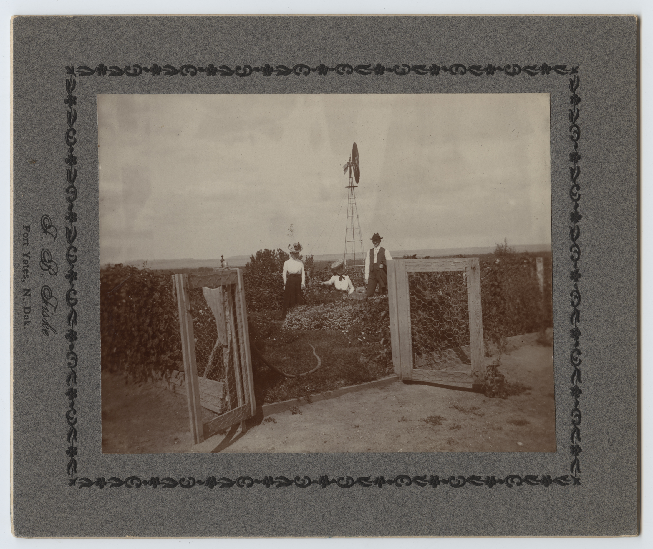 Title: Fenced garden with produce raised by Mr. and Mrs. Frank Fiske, Fort Yates (N.D.)
