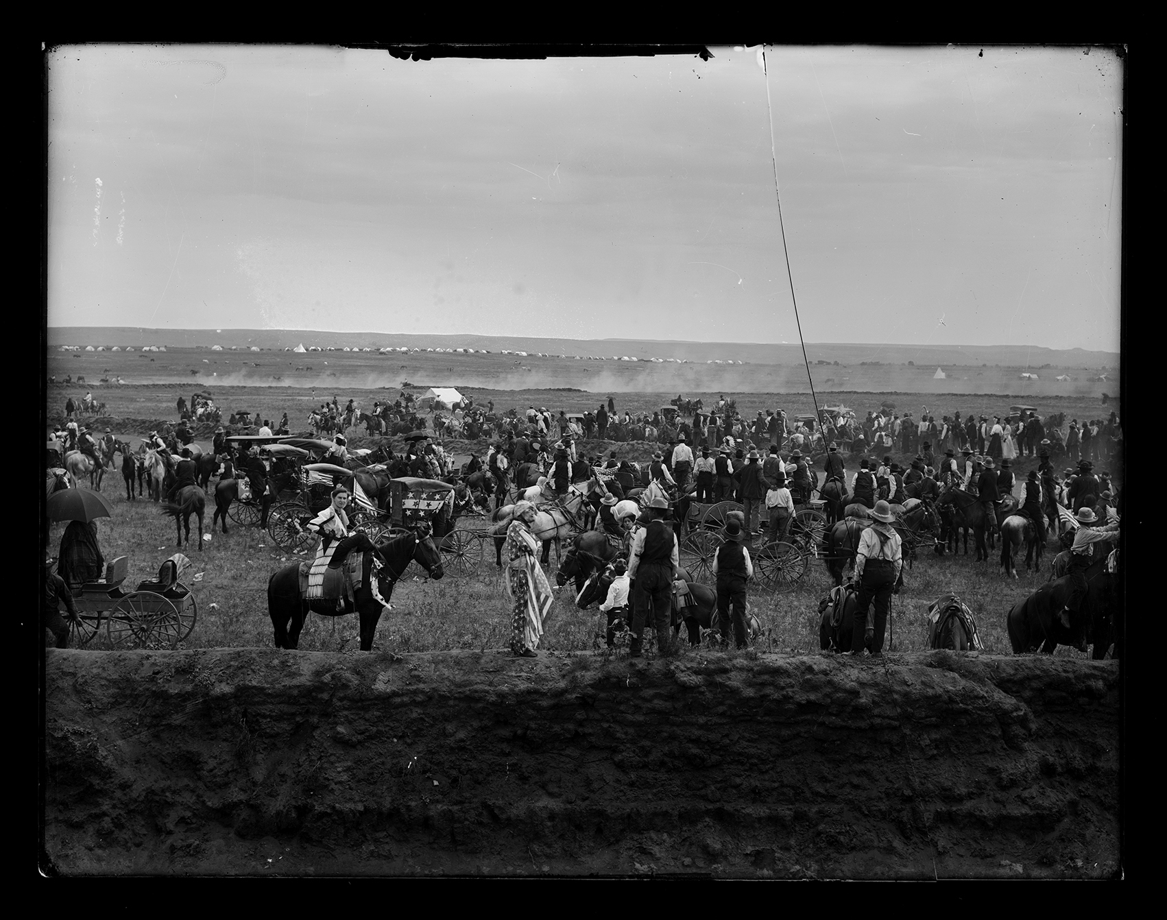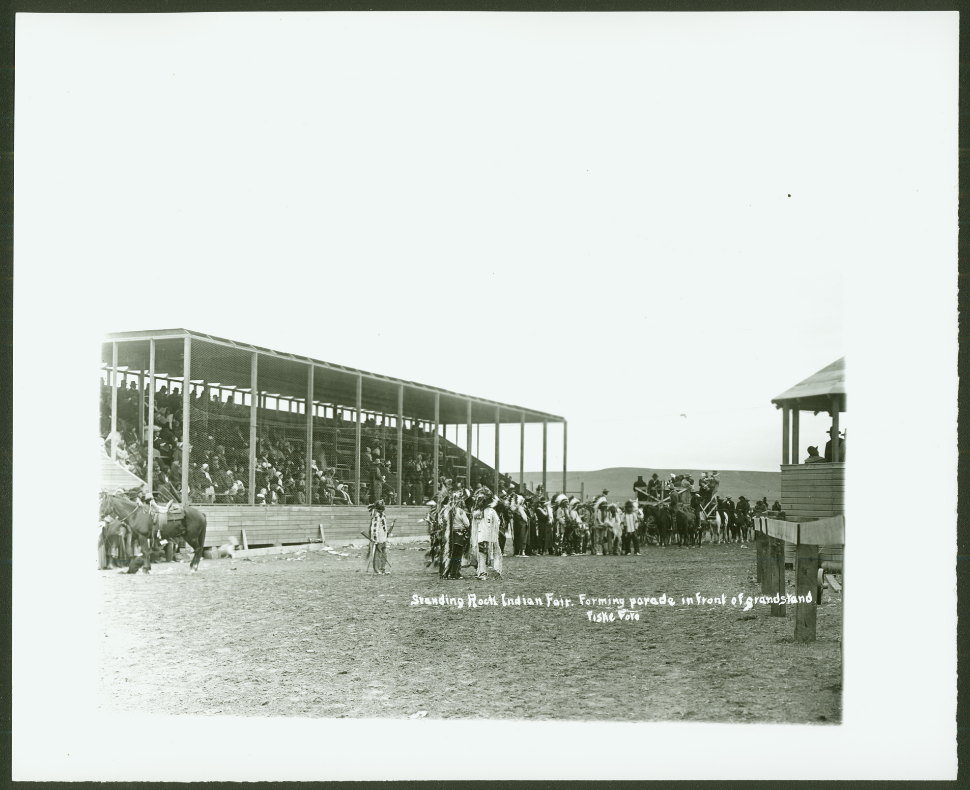 Title: "Standing Rock Indian Fair. Forming parade in front of grandstand"