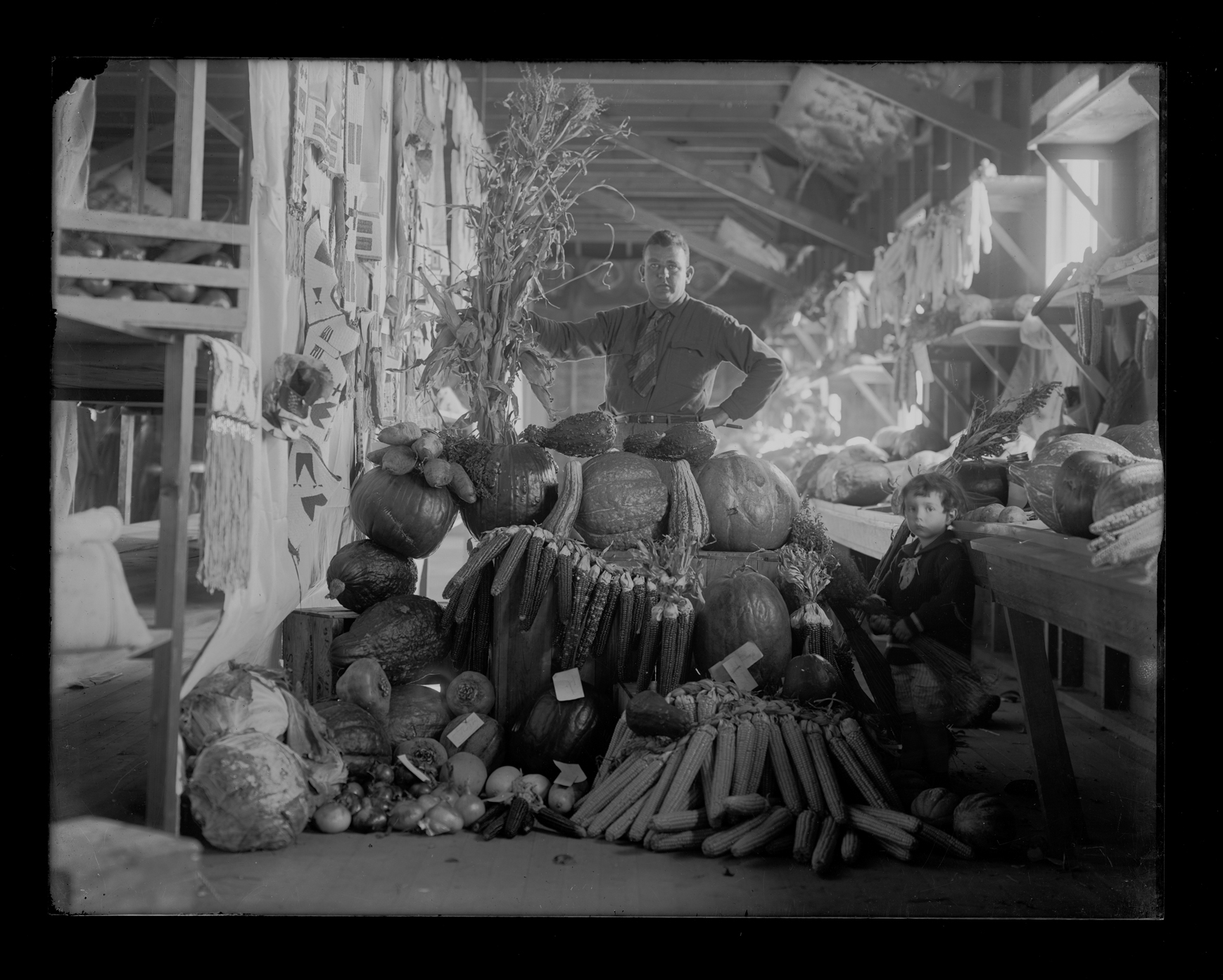 Title: Man and child at vegetable exhibit, Standing Rock Fair, Fort Yates (N.D.)