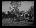 Title: Frank Fiske and a woman in a buggy next to Indians on horses
