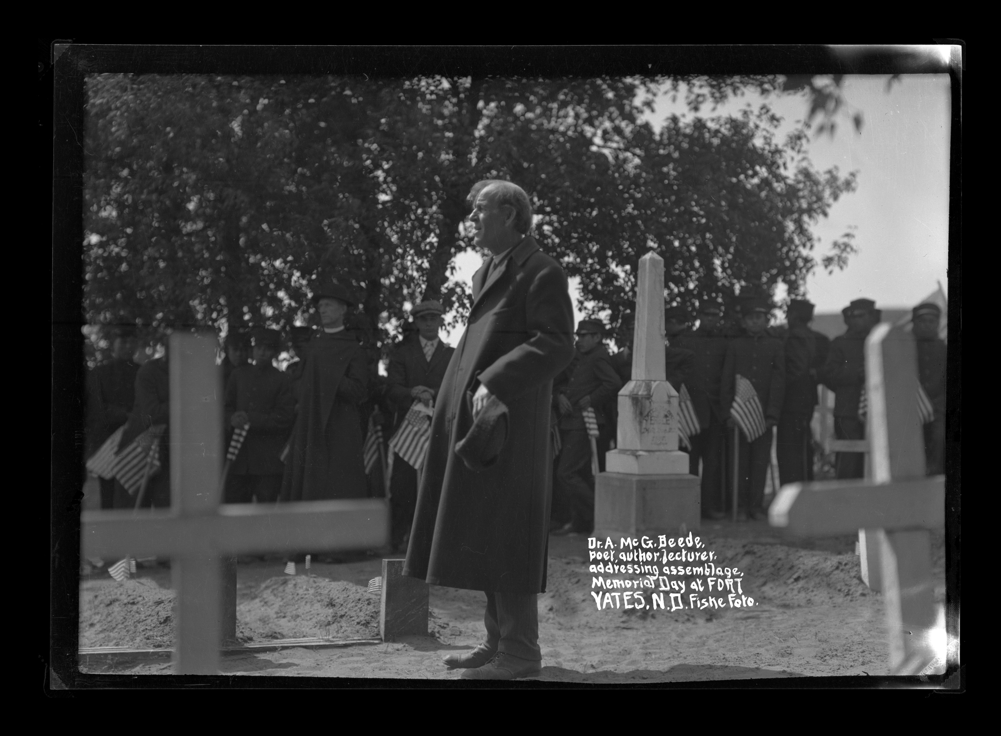 Title: Aaron McGaffey Beede addressing Memorial Day crowd at Fort Yates (N.D.)