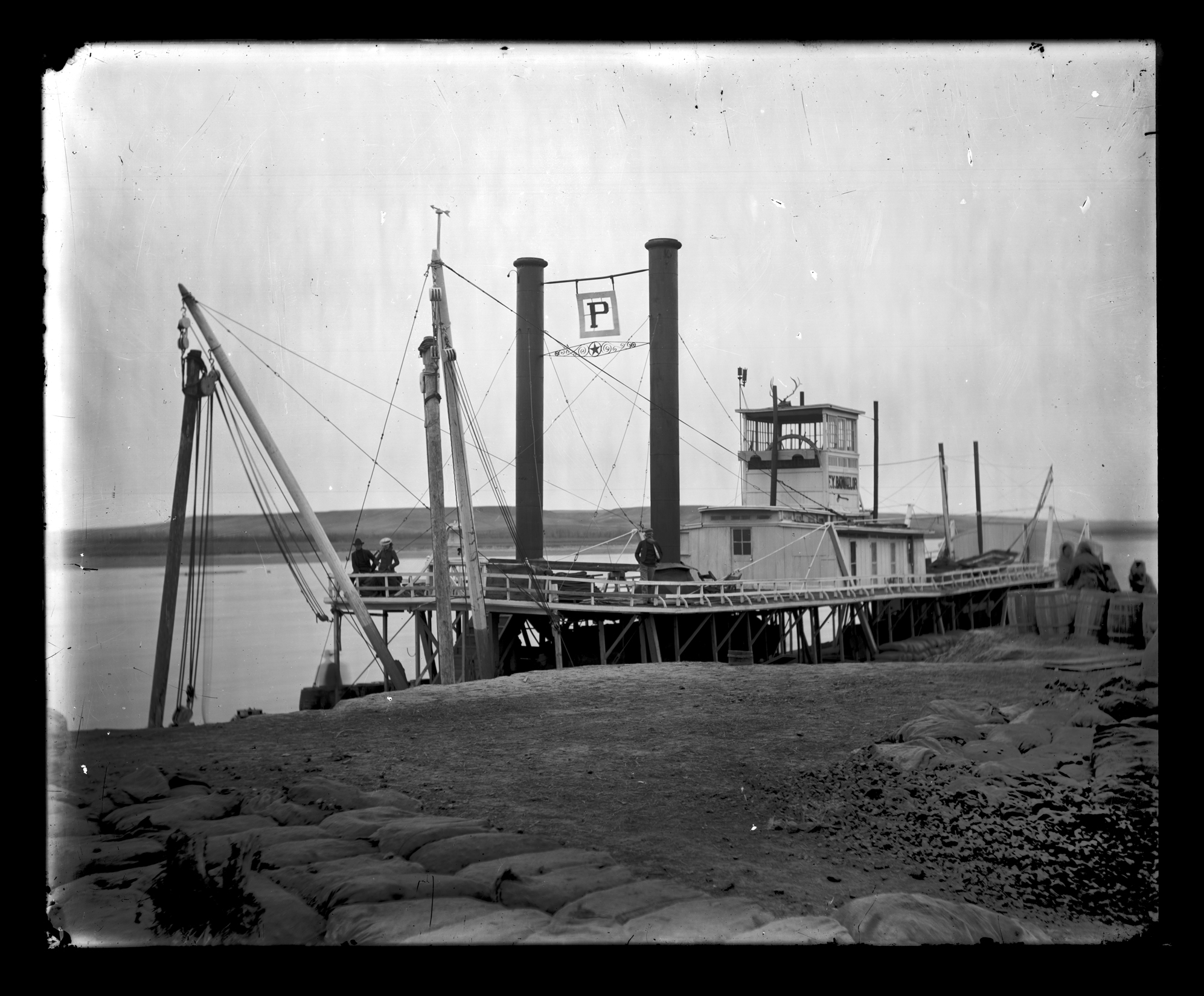 Title: Steamboat F. Y. Batchelor unloading coal at Fort Yates landing