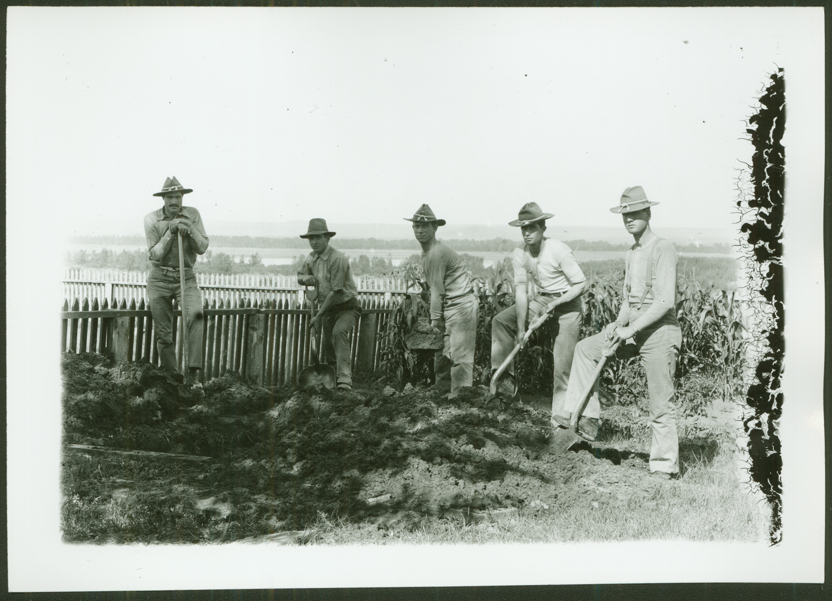 Title: Sister Berthold and Indian boys gardening, Fort Yates (N.D.)