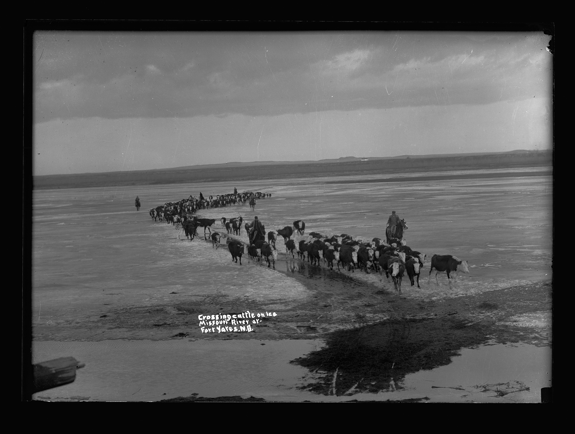 Title: Cattle crossing on ice over the Missouri River, Fort Yates (N.D.)