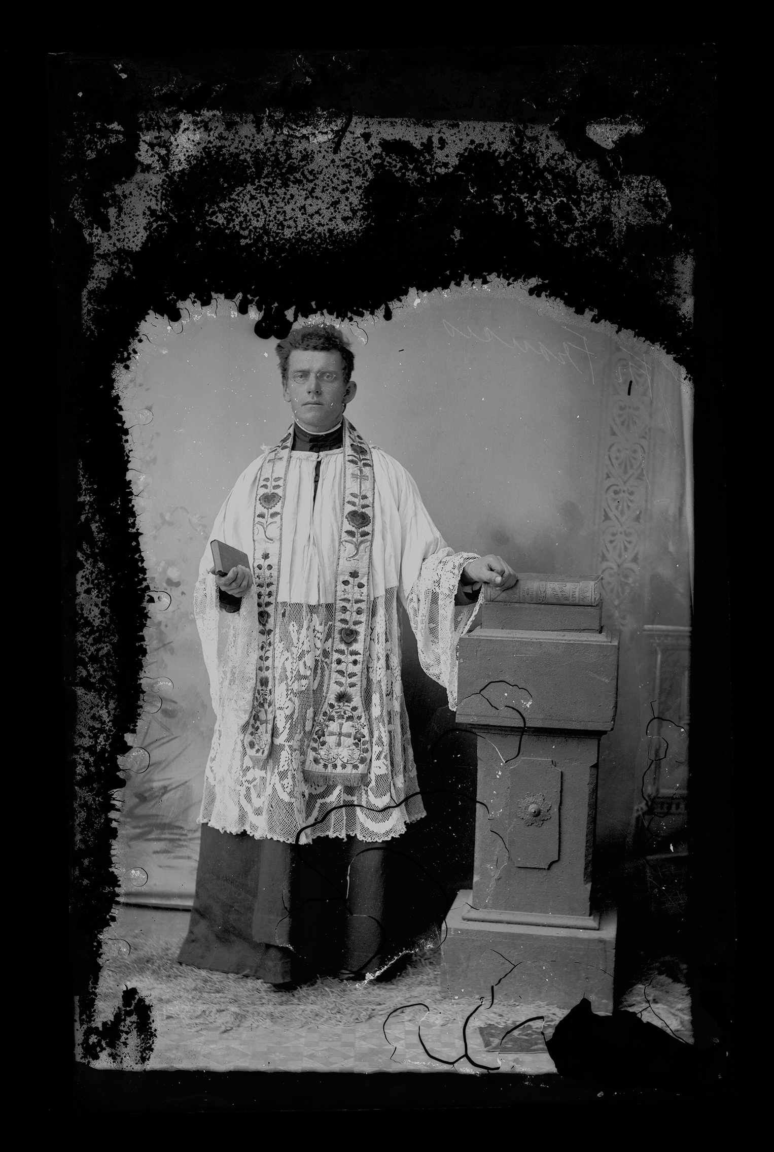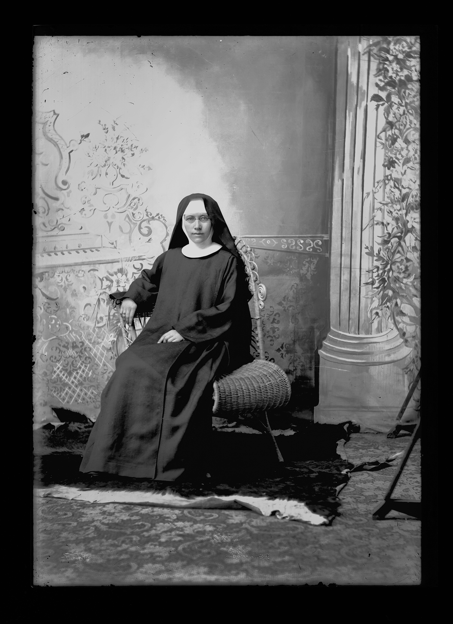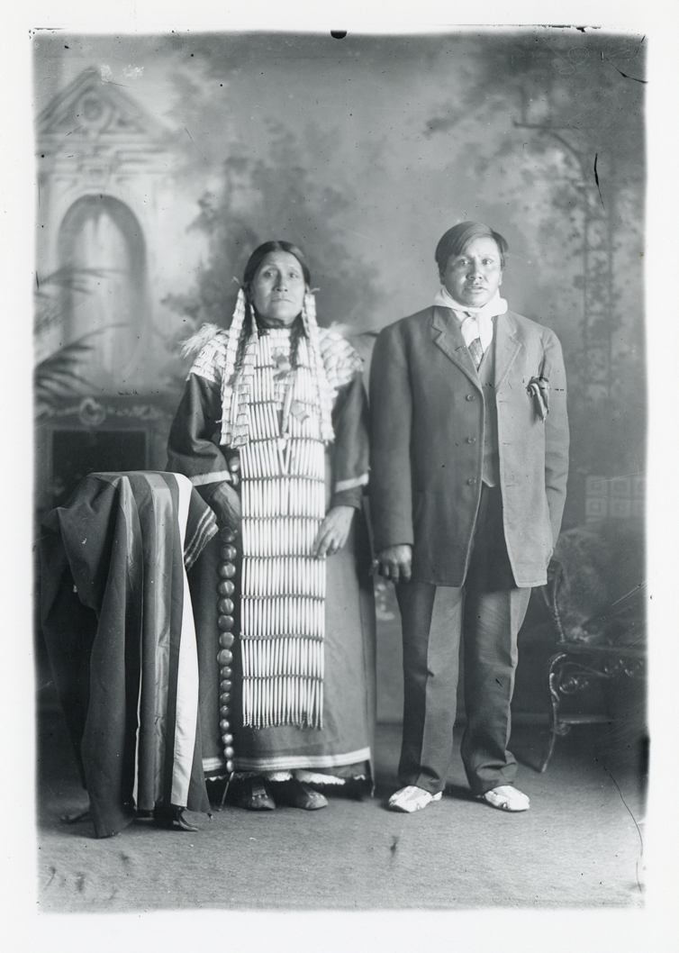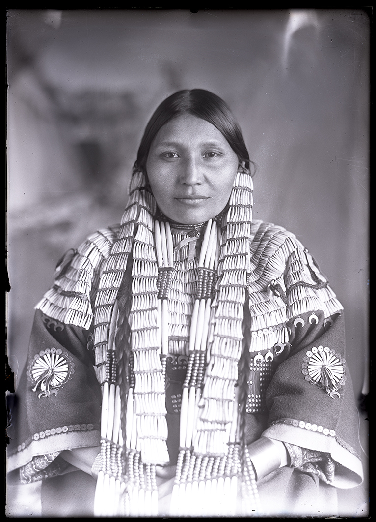 Title: Mrs. Harry (Mamie Josephine Marsh) McLaughlin in wedding dress, Wakpala (S.D.)