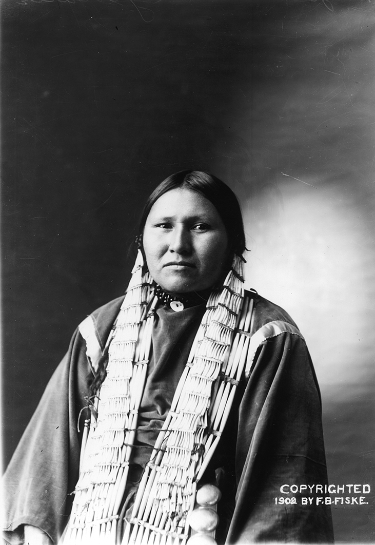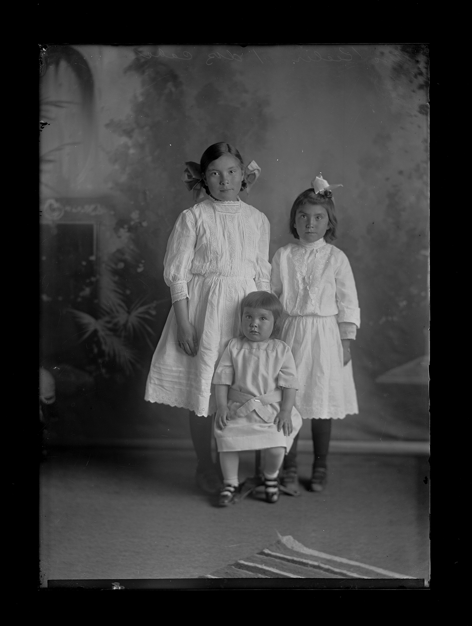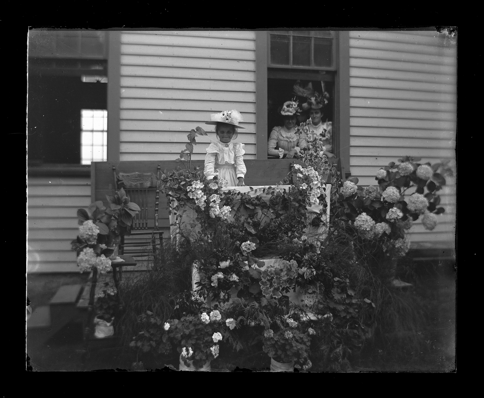 Title: Women and girl with flowers in front of house, Fort Yates (N.D.)