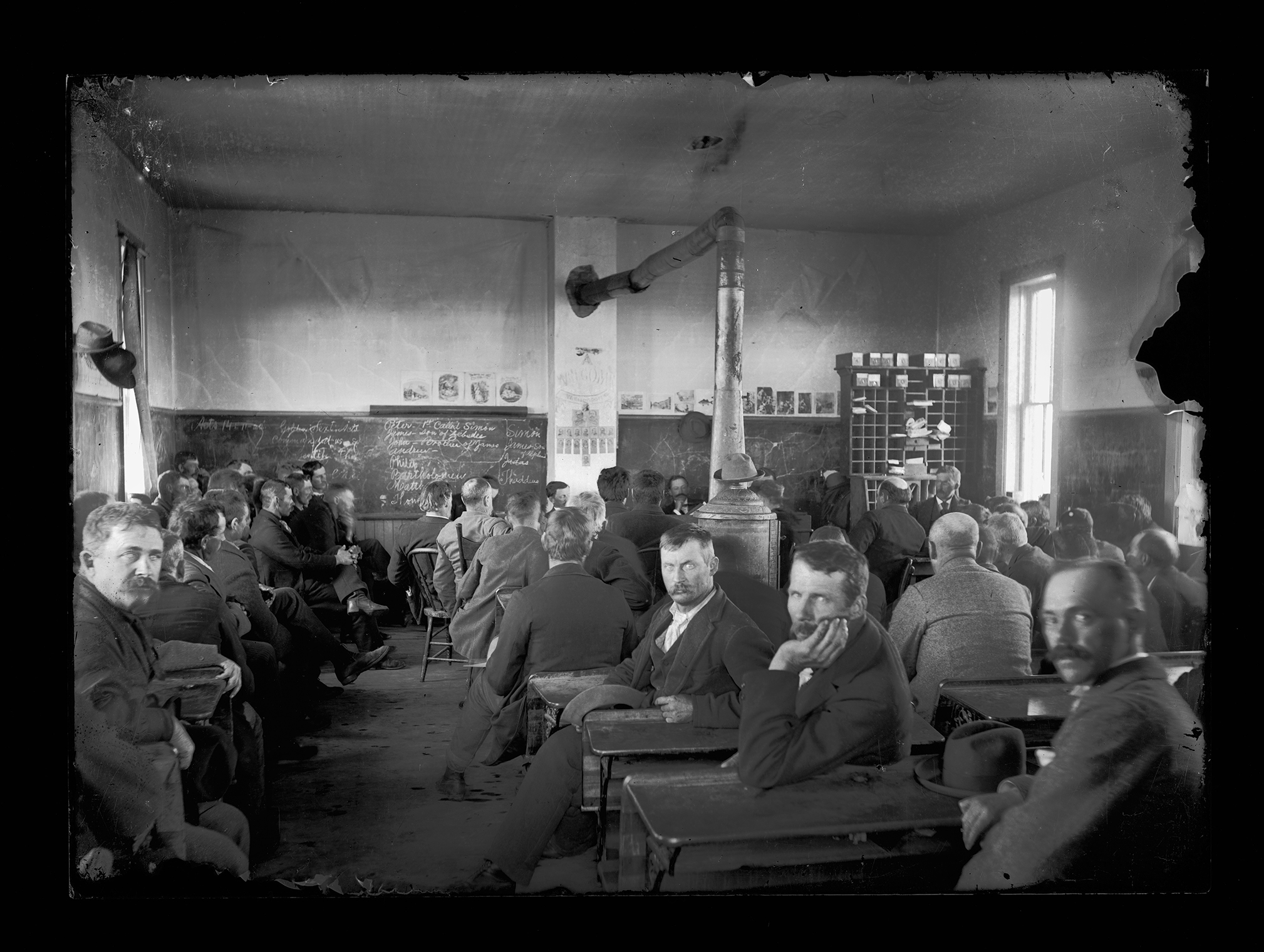 Title: Emmons County Courthouse interior at the time of the Spicer murder trial, Williamsport (N.D.)