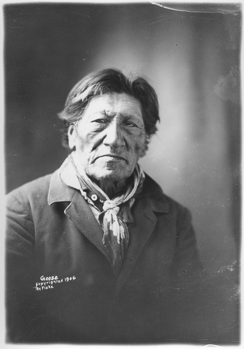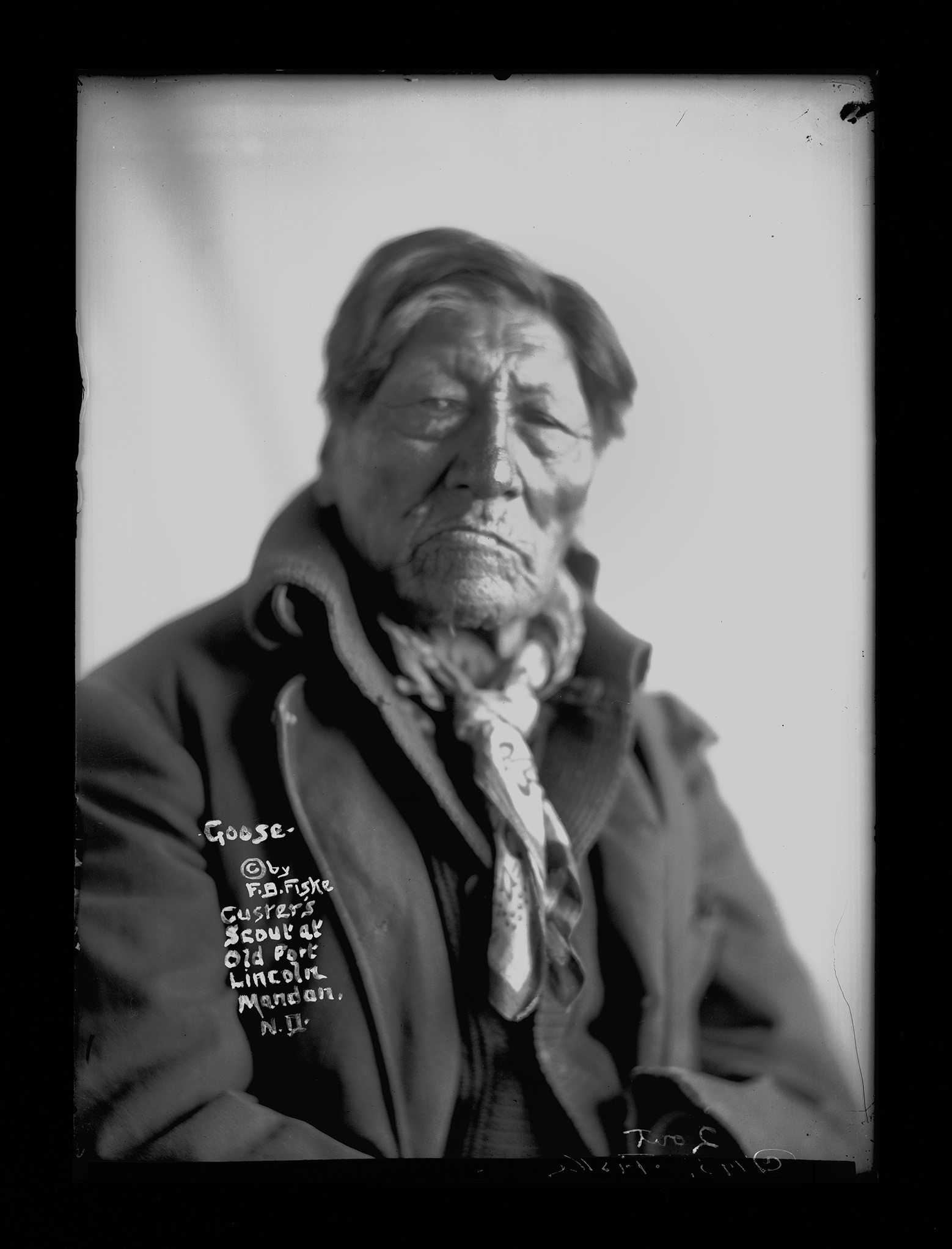 Title: "Goose, Custer's Scout at Old Fort Lincoln, Mandan, N.D."
