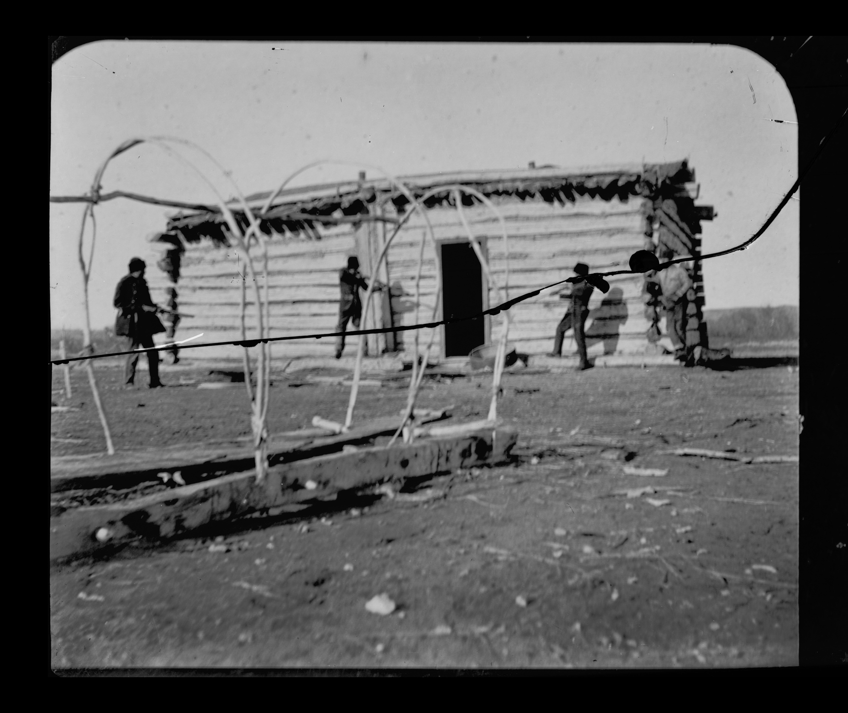 Title: Arrest re-enactment at Sitting Bull's Cabin