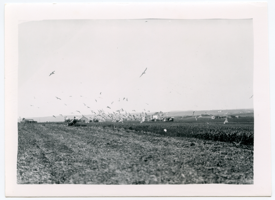 Title: Seagulls eating grasshoppers near Fort Yates (N.D.)
