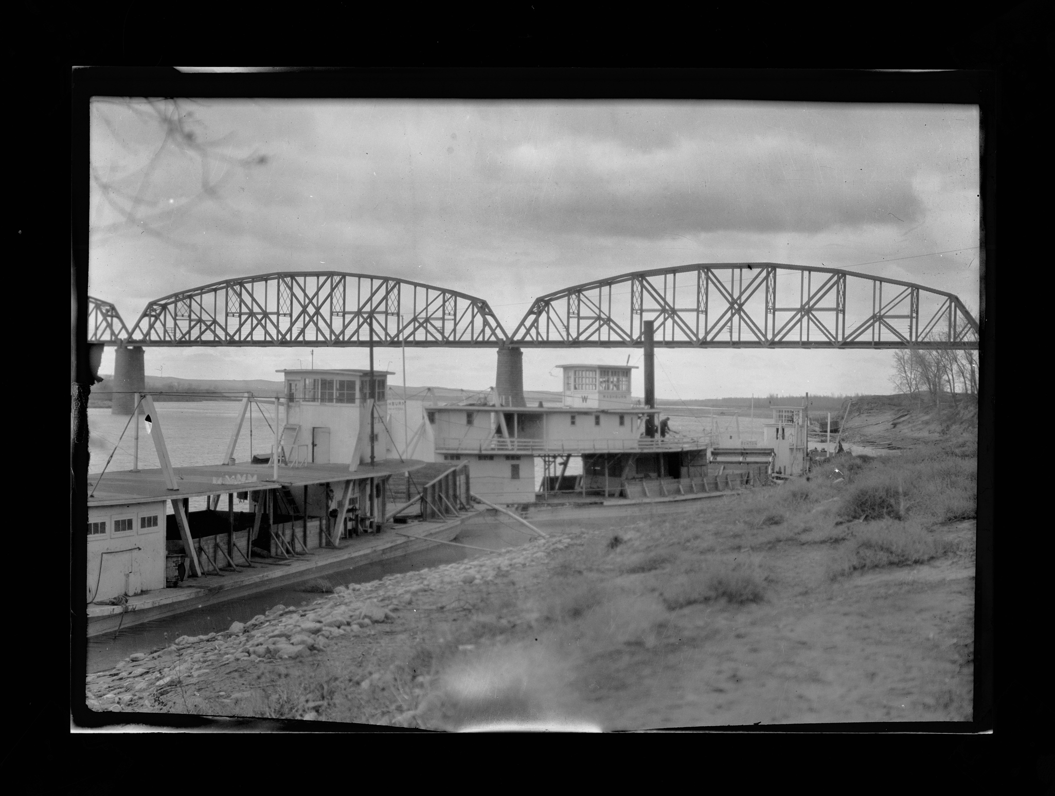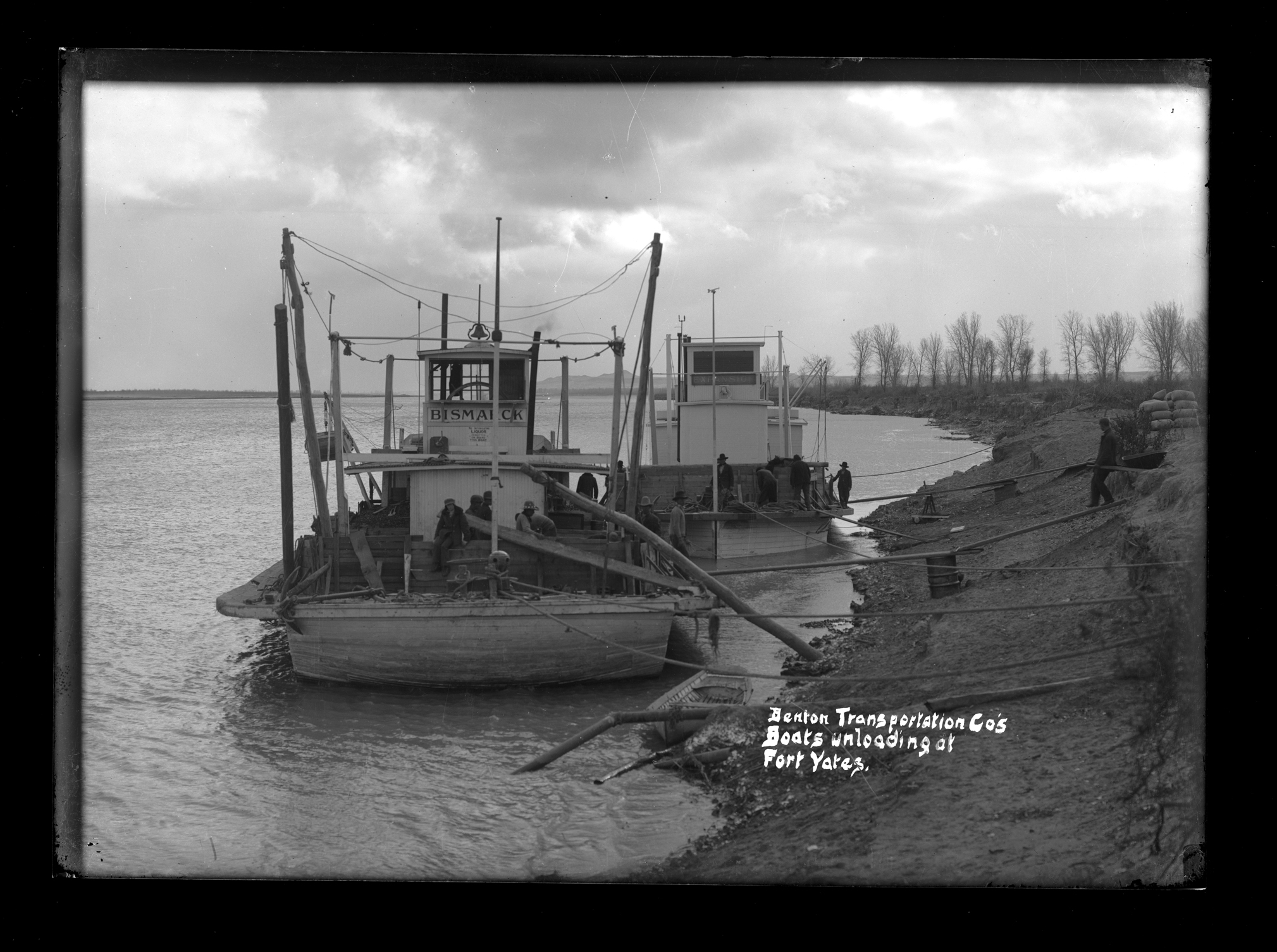 Title: Gas boats Bismarck and Expansion unloading at Fort Yates (N.D.)